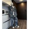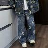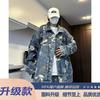 Jaqueta jeans estampada completa masculina primavera e outono casual solta jaqueta jeans na moda para adolescentes