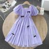 Vestido de Verão Estilo Coreano para Meninas 2024 Novo Estilo Crianças Médias e Grandes Moda Mangas Bufantes Doce e Fofo Vestido de Princesa