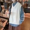 Trendy marca com decote em V camisola colete primavera e outono xadrez dos homens pullover all-matching ins colete estilo de Hong Kong japonês sem mangas colete de malha
