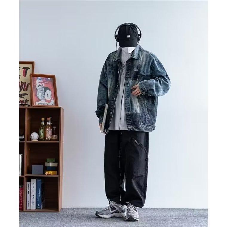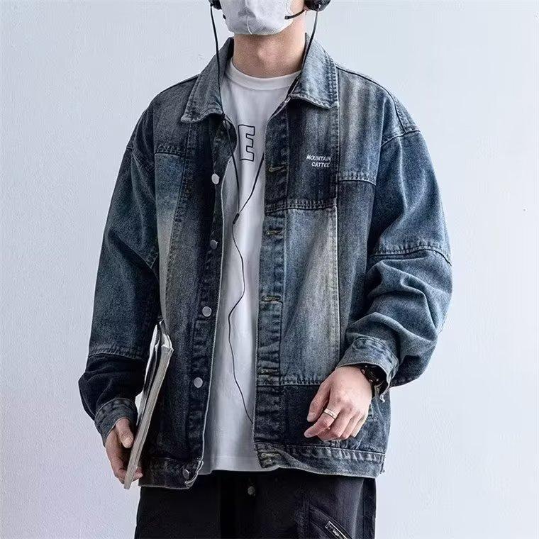 Compre American retro blue stitching Denim coat masculino outono 2023 Novo top de jaqueta de nicho solto no atacado no Joom.pro