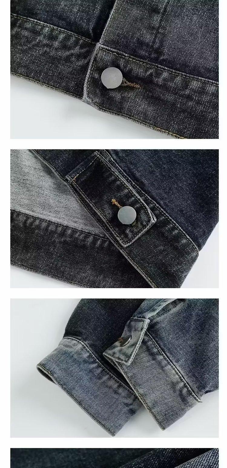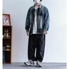 American retro blue stitching Denim coat masculino outono 2023 Novo top de jaqueta de nicho solto