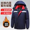 Outono e inverno roupas de proteção do trabalho quente engrossado ferramenta de tira reflexiva macacão de reparo de automóveis masculino terno jaqueta acolchoada de algodão à prova de frio roupas de fábrica