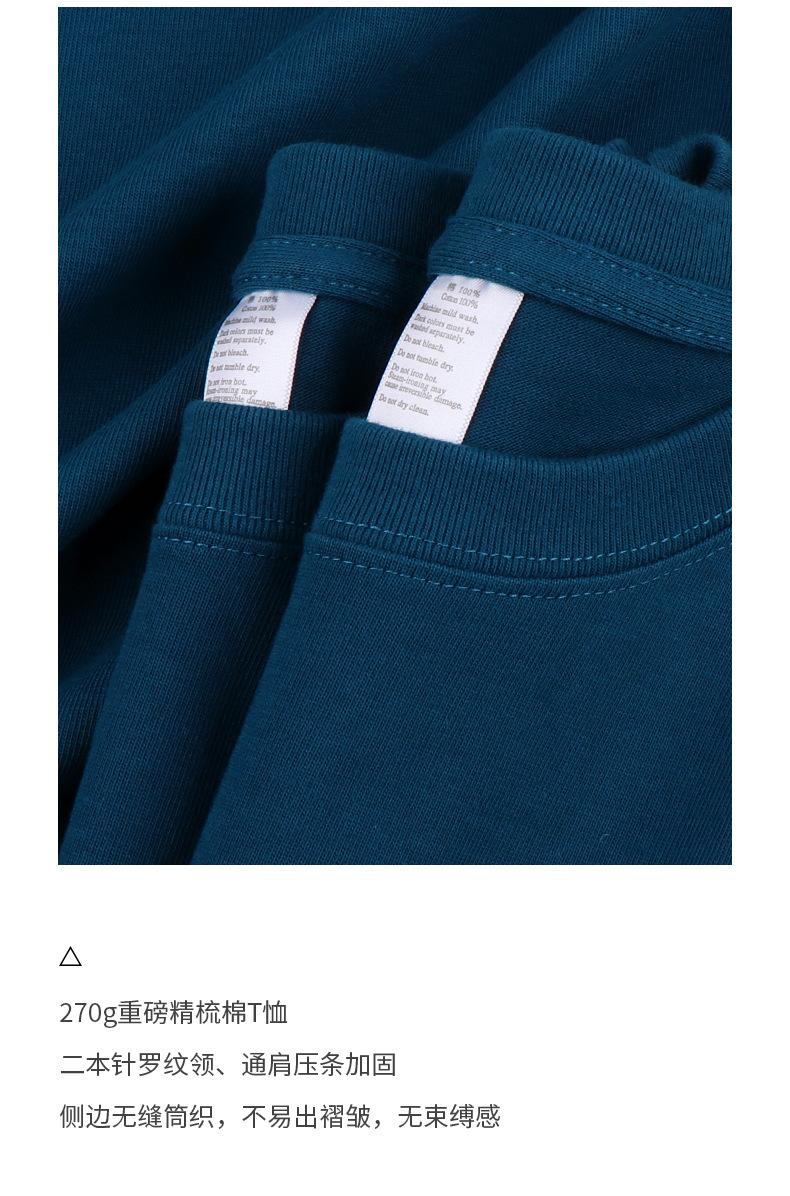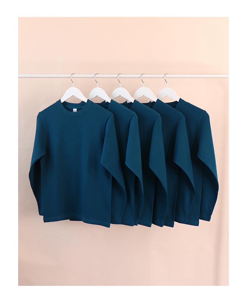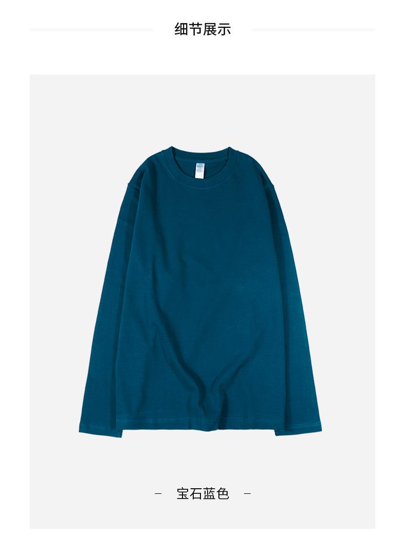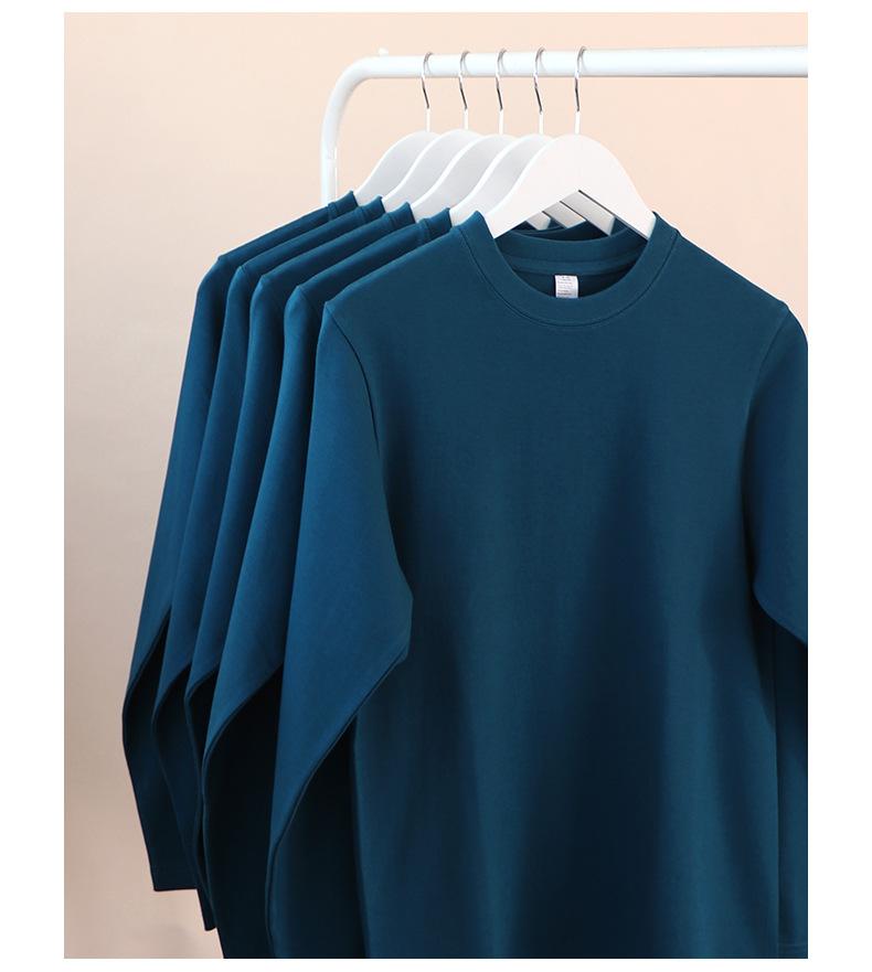Camiseta masculina de manga comprida de algodão pesado americano 270g, outono e inverno, jaqueta interna solta, cor sólida, gola redonda, camisa de base