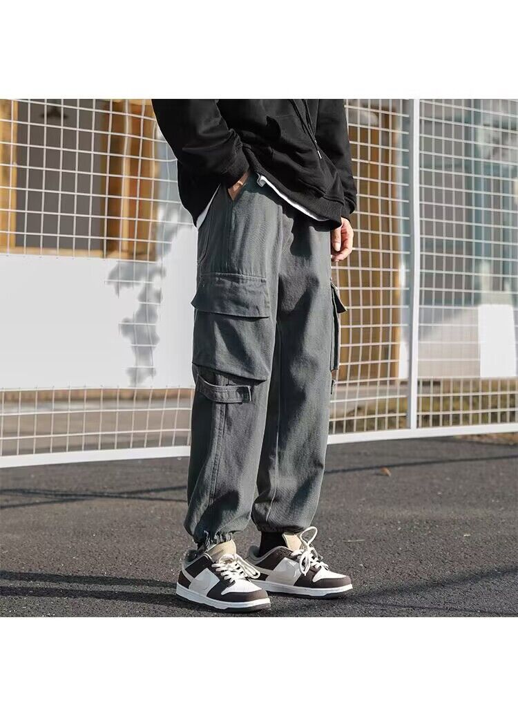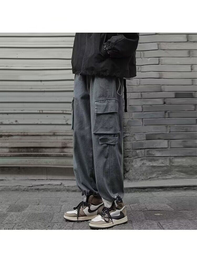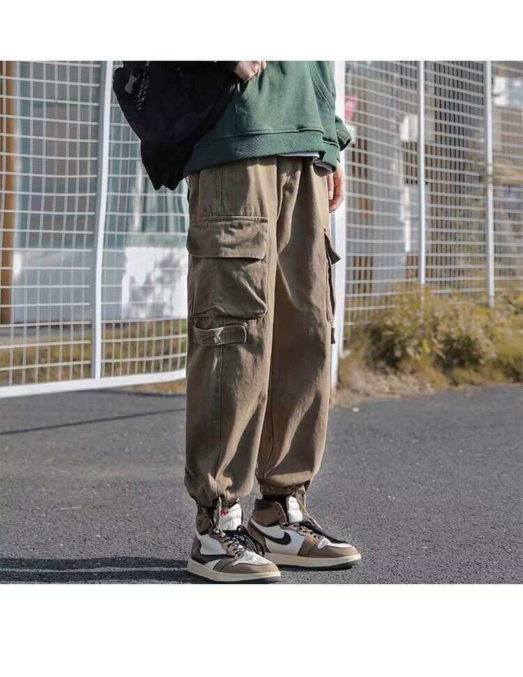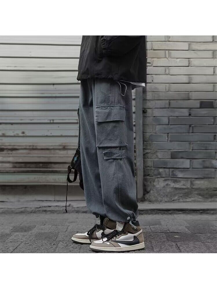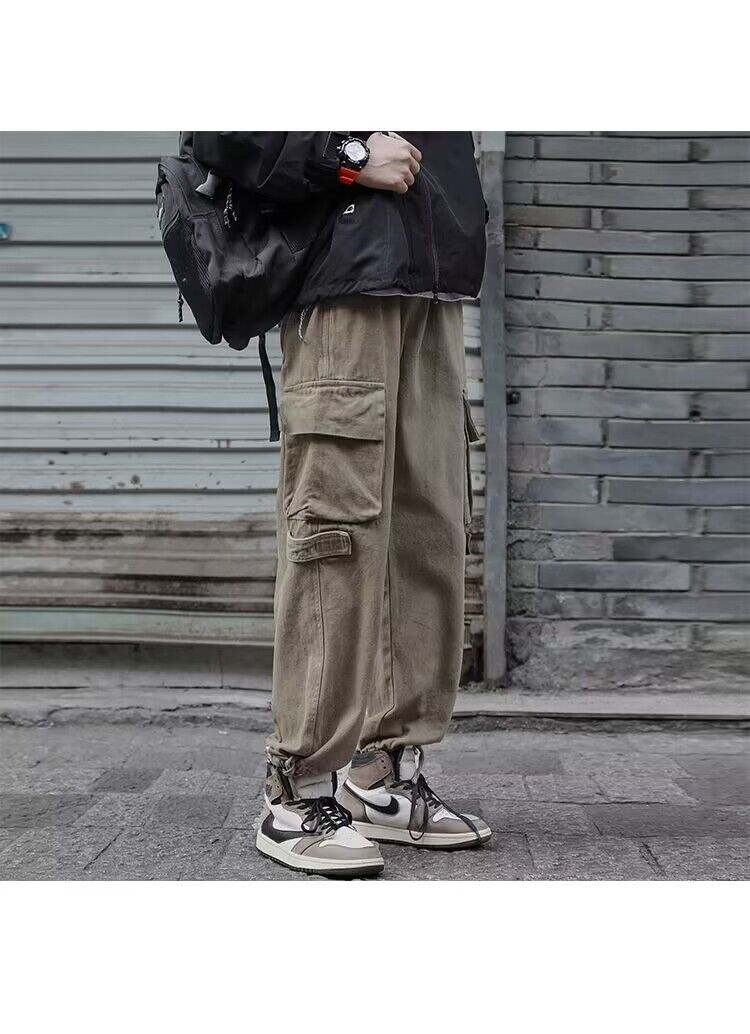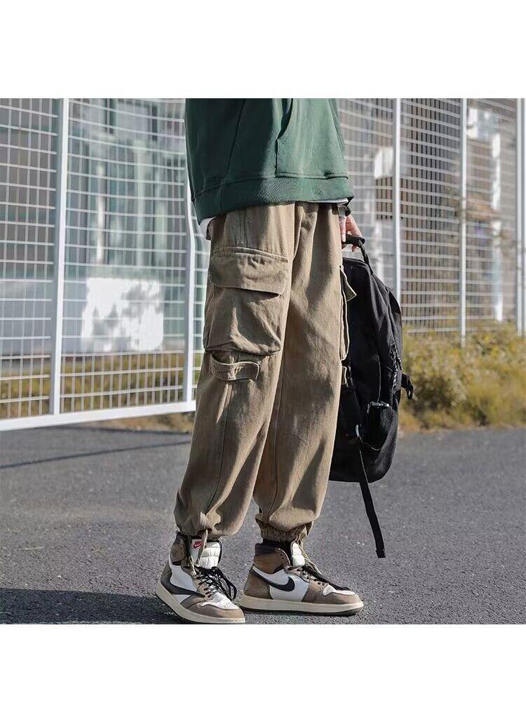 Calças masculinas primavera, outono e inverno, marca de moda coreana, soltas, amarradas no tornozelo, fritas, com babados, macacão bonito, calças casuais retrô japonesas