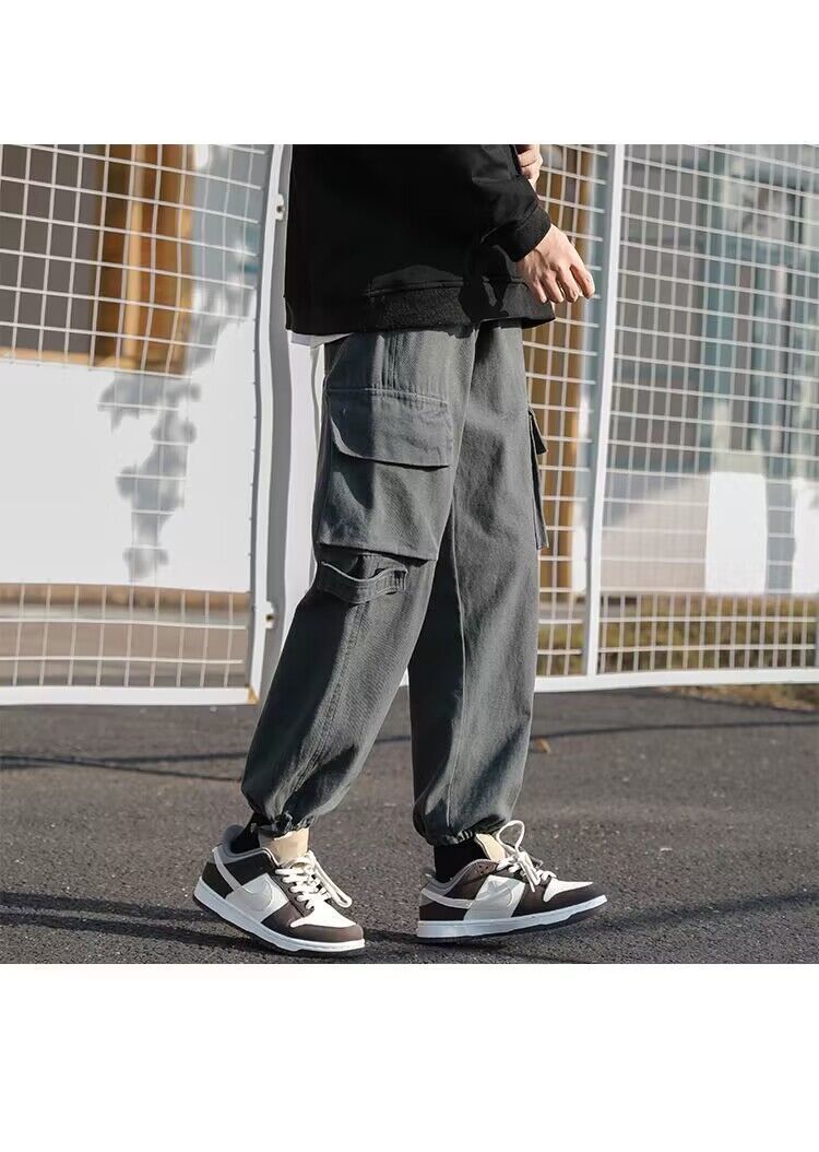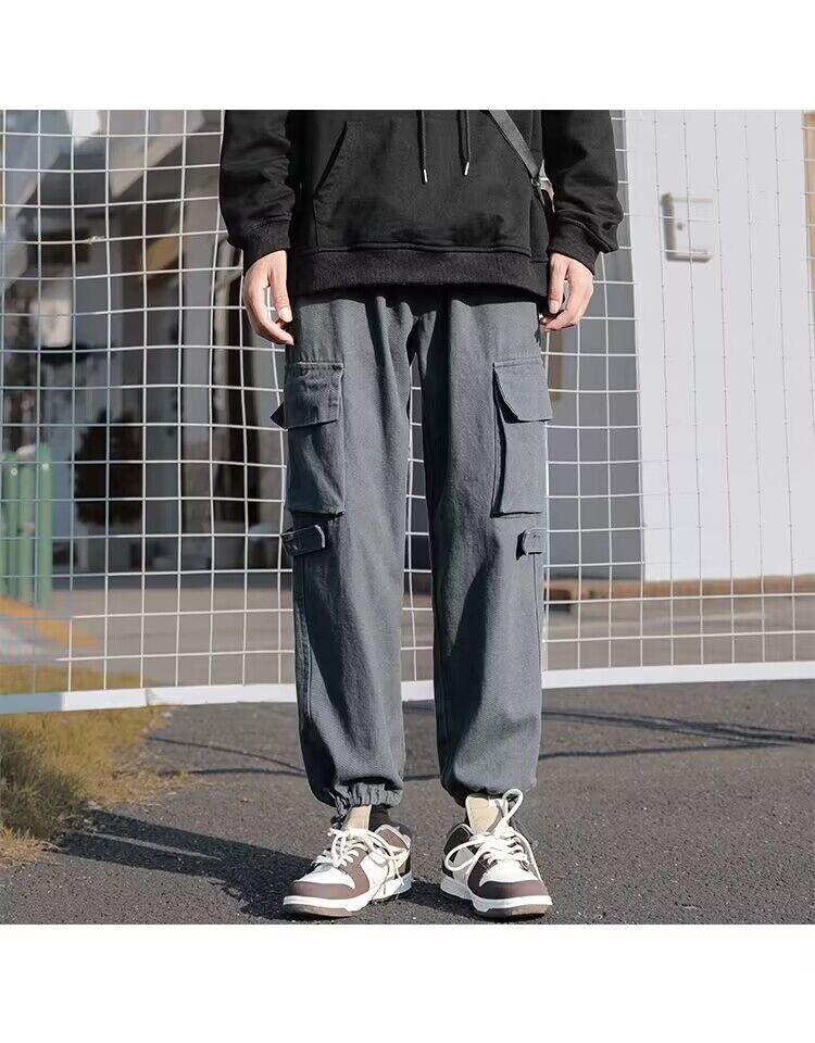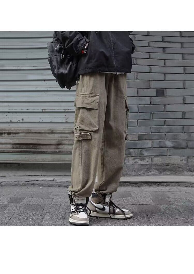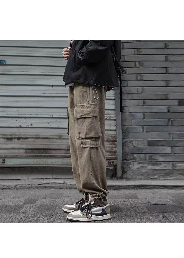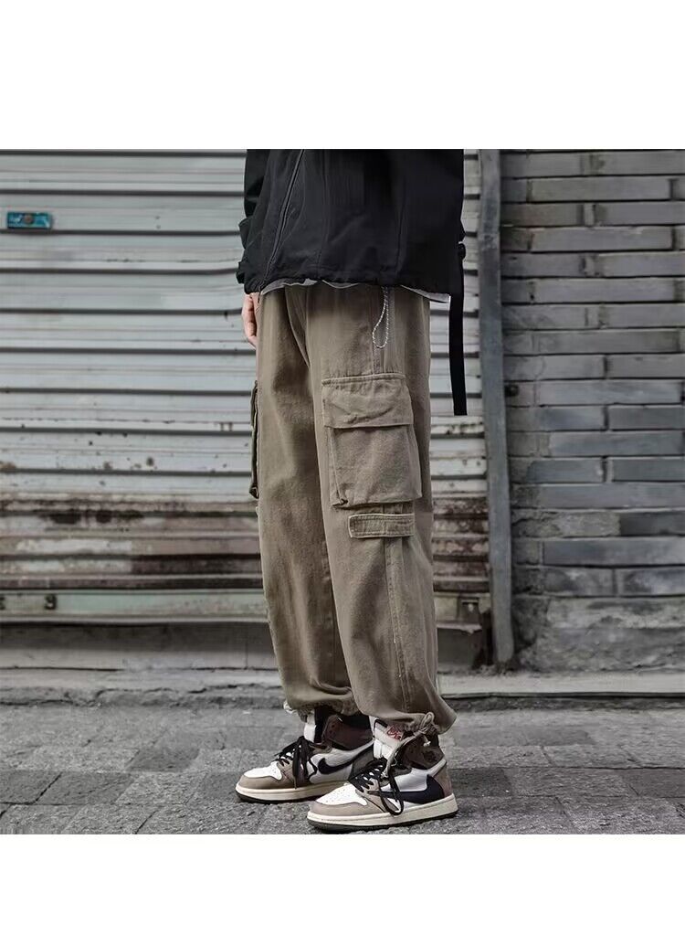 Calças masculinas primavera, outono e inverno, marca de moda coreana, soltas, amarradas no tornozelo, fritas, com babados, macacão bonito, calças casuais retrô japonesas