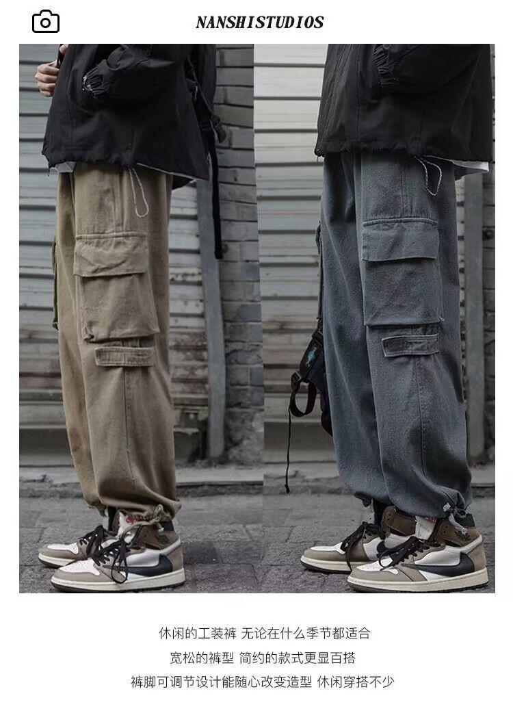 Compre Calças masculinas primavera, outono e inverno, marca de moda coreana, soltas, amarradas no tornozelo, fritas, com babados, macacão bonito, calças casuais retrô japonesas no atacado no Joom.pro