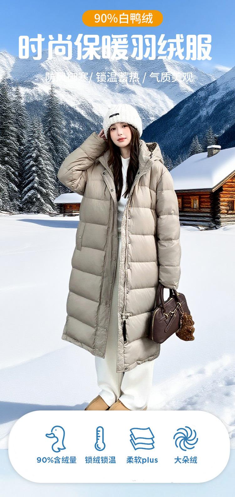 Jaqueta Feminina de Comprimento Médio 2025 Frio Extremo Espessa Quente com Capuz Roupa de Inverno para Casal Jaqueta Puffer Acolchoada até o Joelho à Prova de Frio