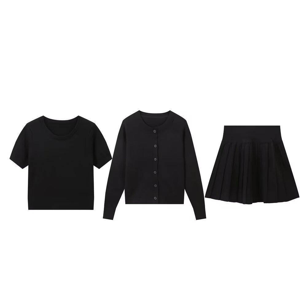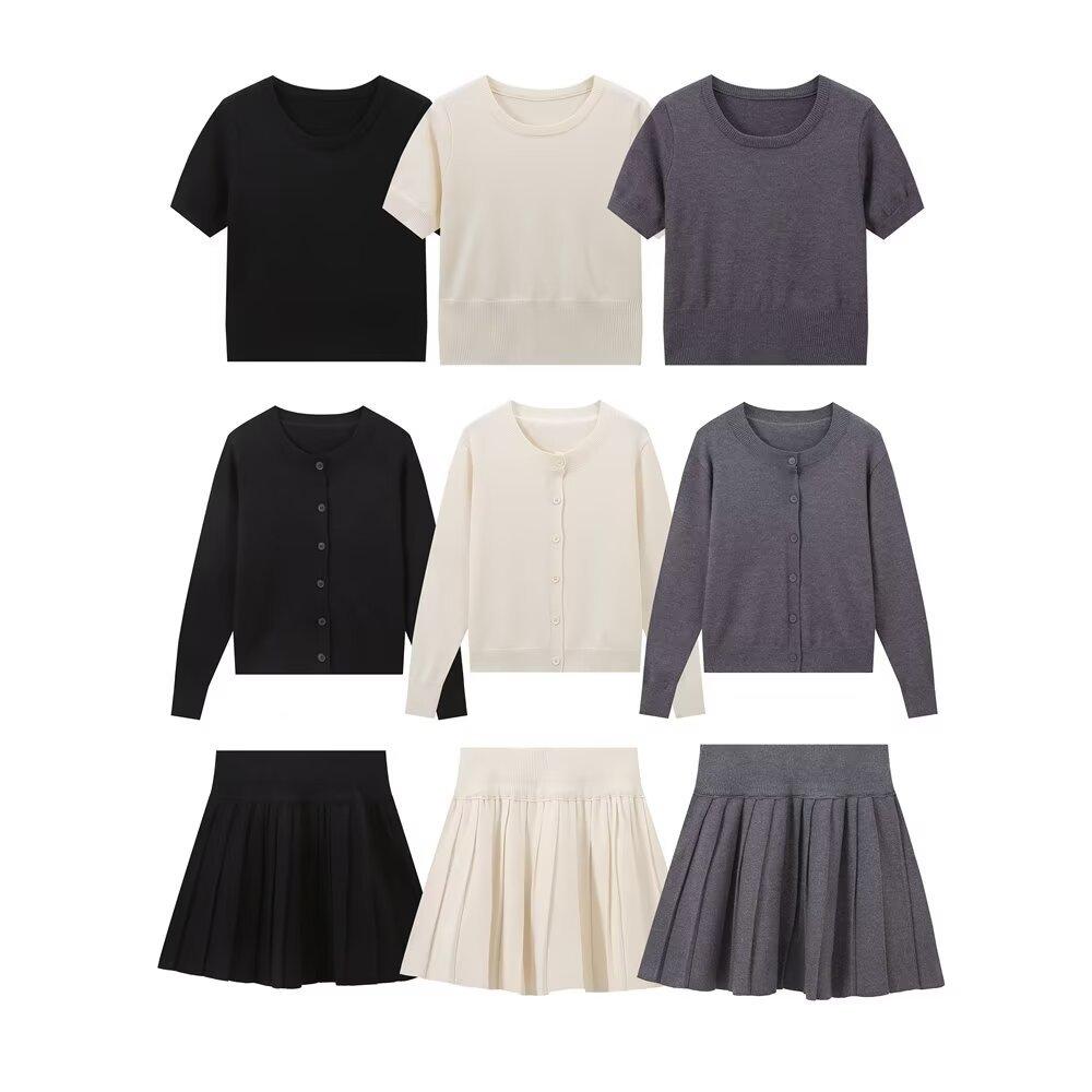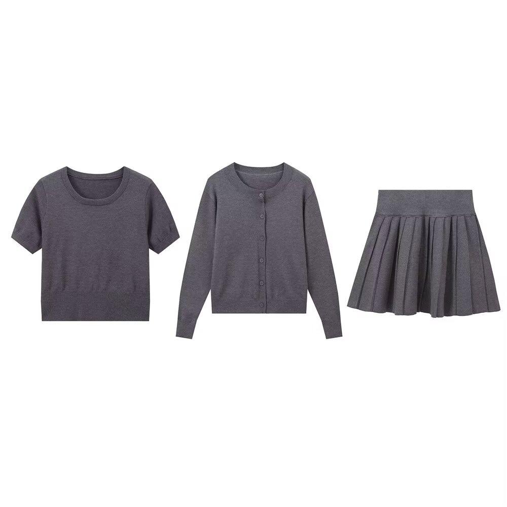 Amazon comércio exterior transfronteiriço Europeu e Americano feminino 2024 outono e inverno novo casaco de manga curta saia conjunto de três peças
