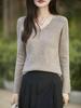 Pulôver decote em V, manga comprida, camisa de base de malha, suéter feminino de emagrecimento interno, outono e inverno, nova colocação, casaco, suéter, top