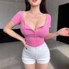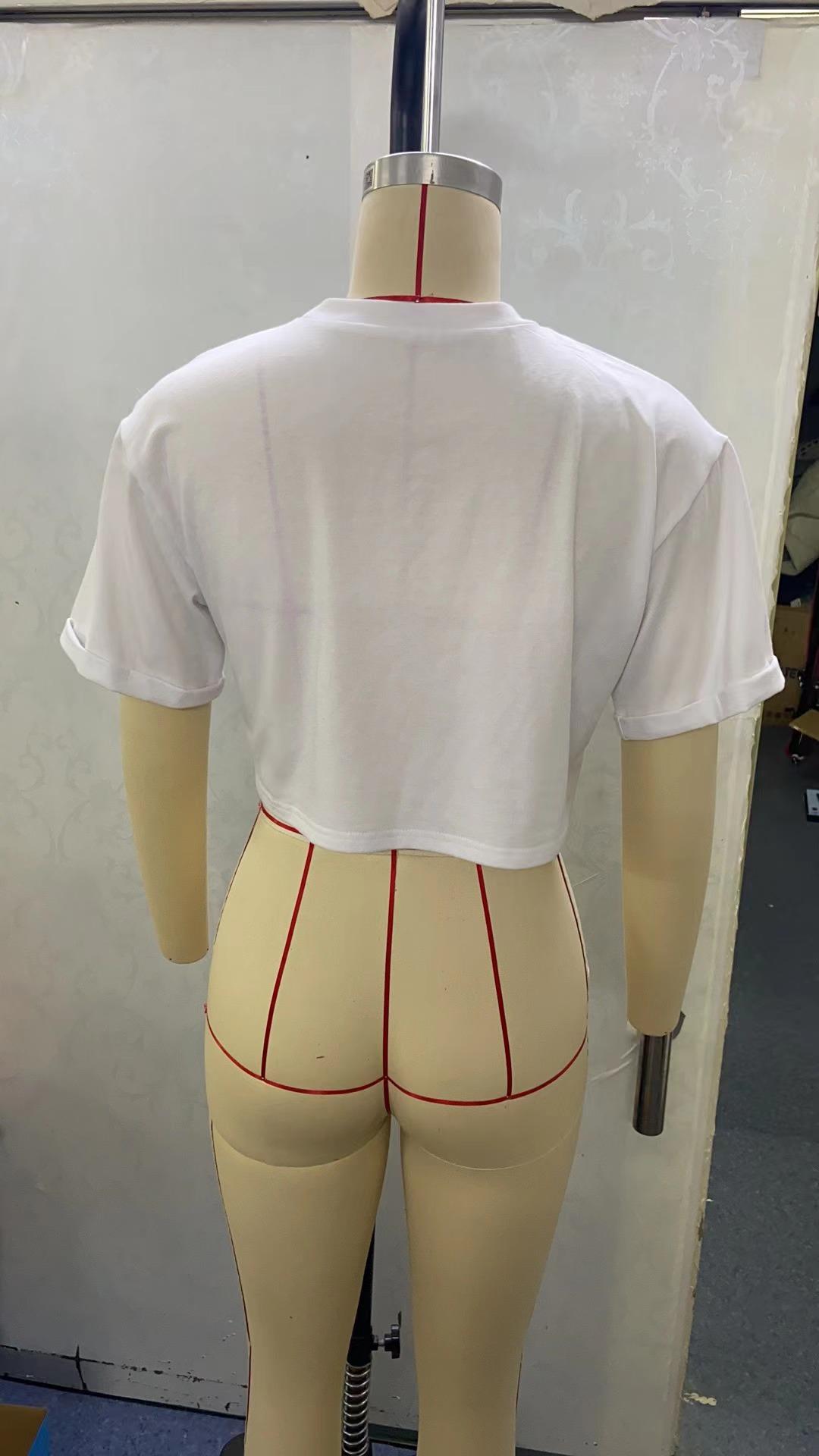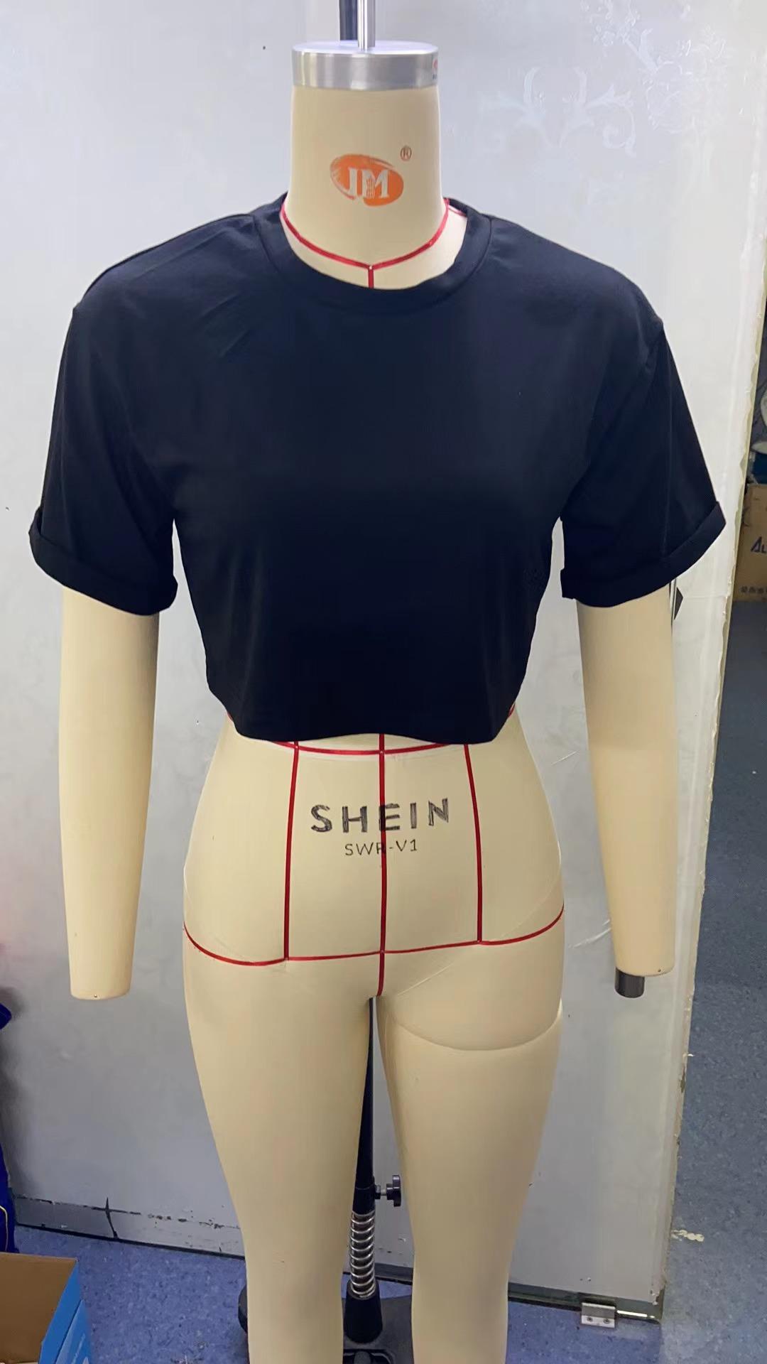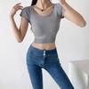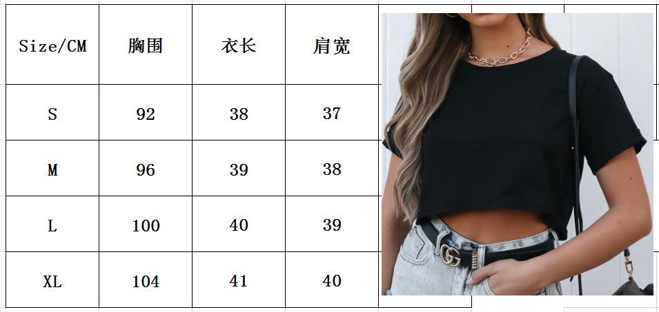 Camiseta feminina elegante de verão 2023, estilo Spice Girl, com estampa de umbigo curto, cor sólida, de comércio exterior europeu e americano, da AliExpress