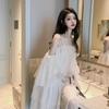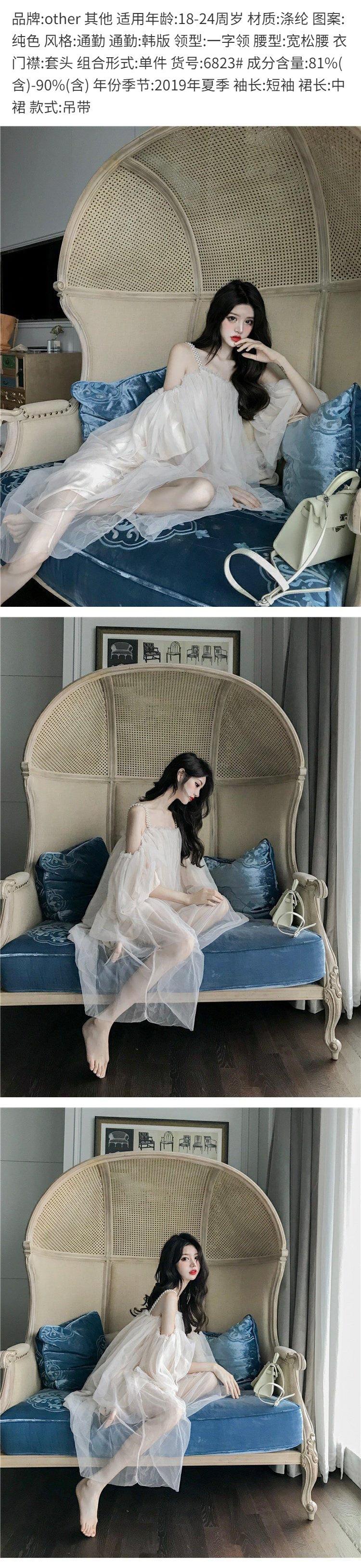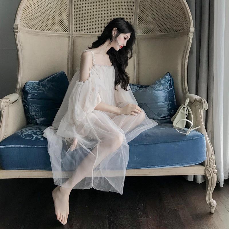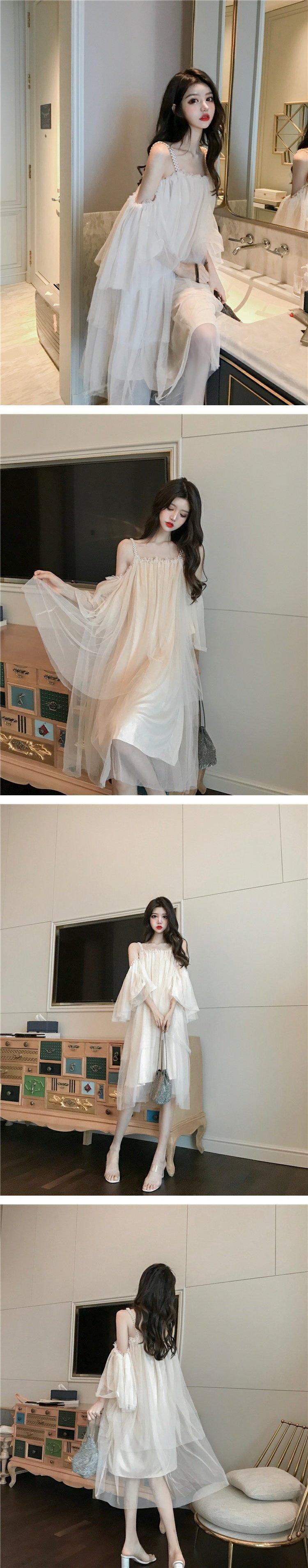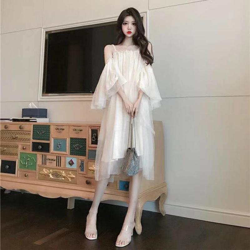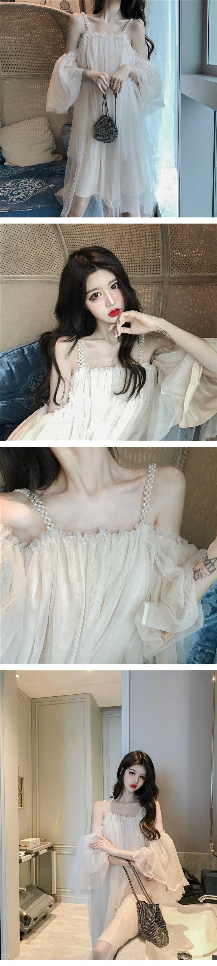 Saia de suspensório de malha de pérolas elegante saia de fada de um ombro só verão 2020 novo vestido doce de ombro só para mulheres