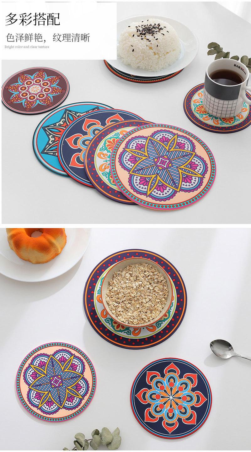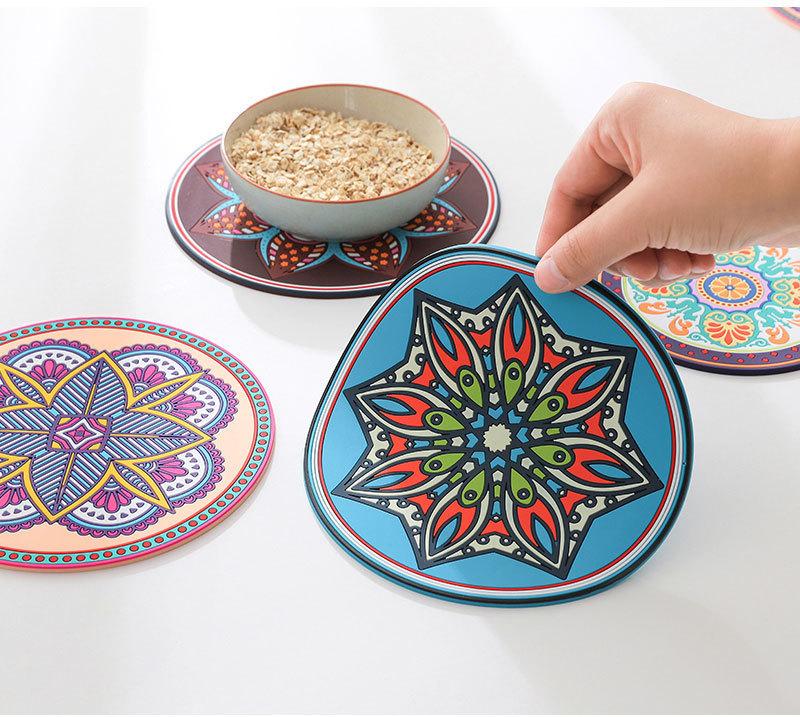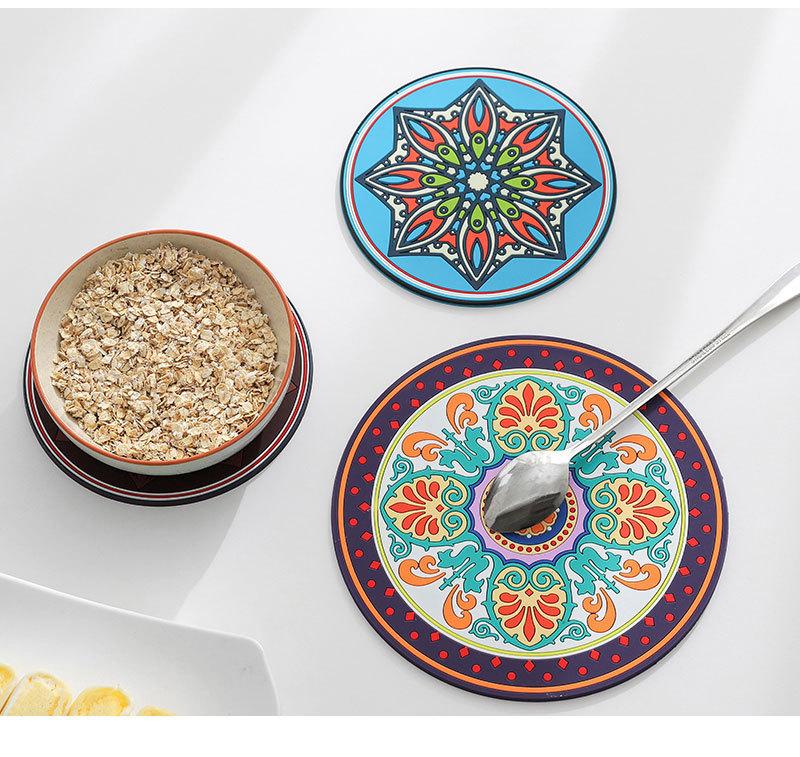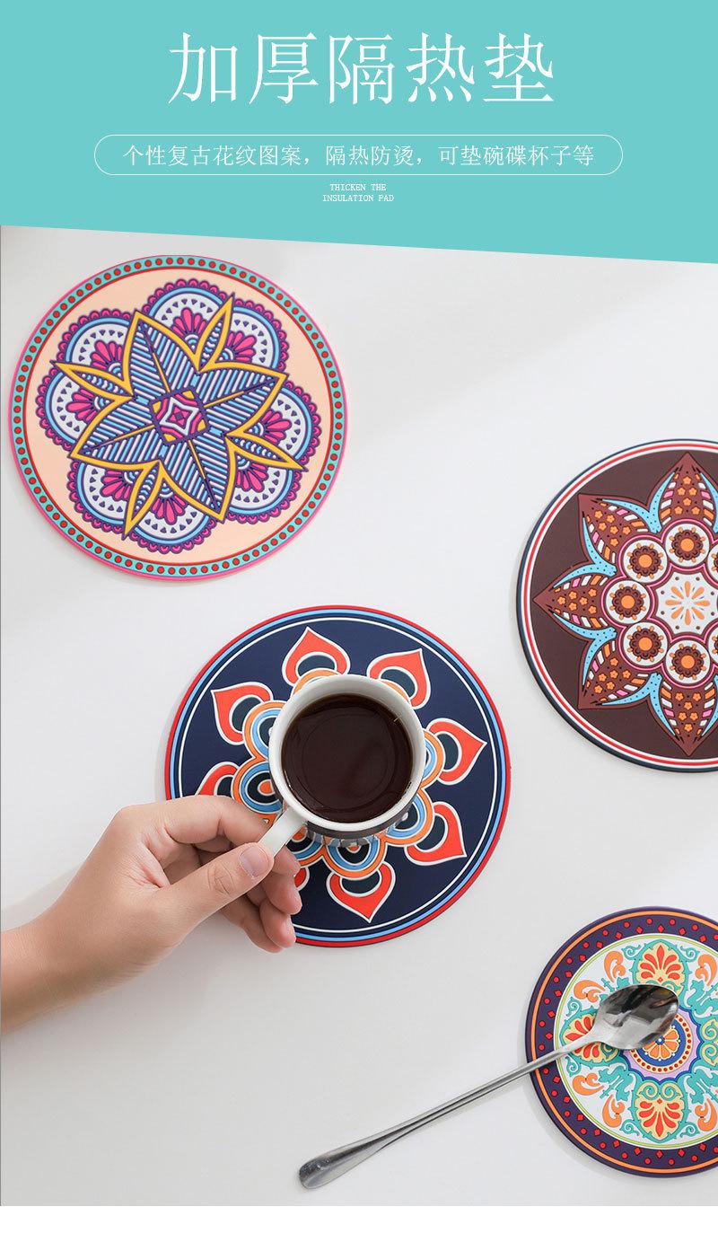 Exótico padrão retro engrossado almofada de isolamento de silicone redondo resistente a altas temperaturas isolamento térmico anti-escaldadura placemat tigela prato coaster