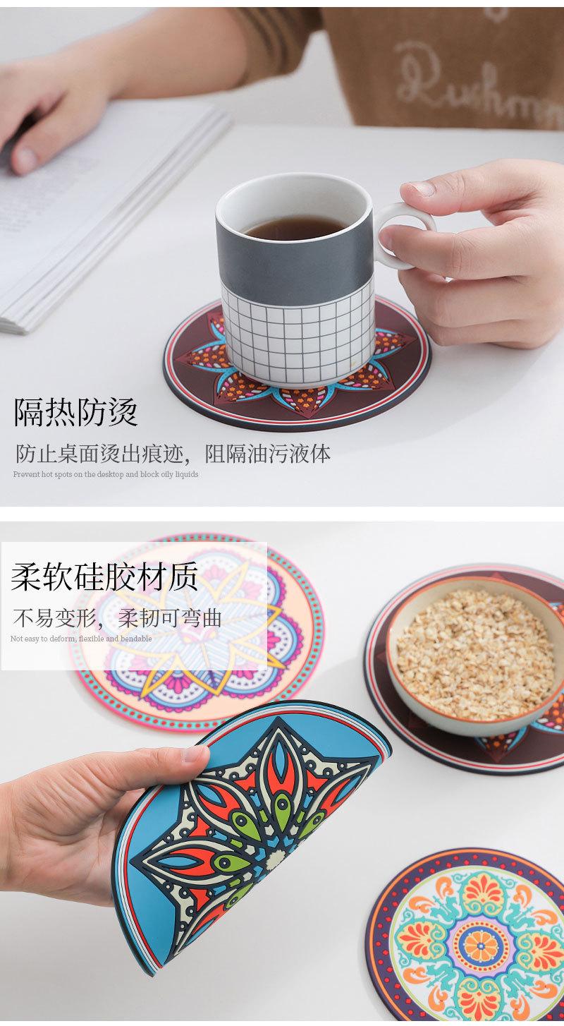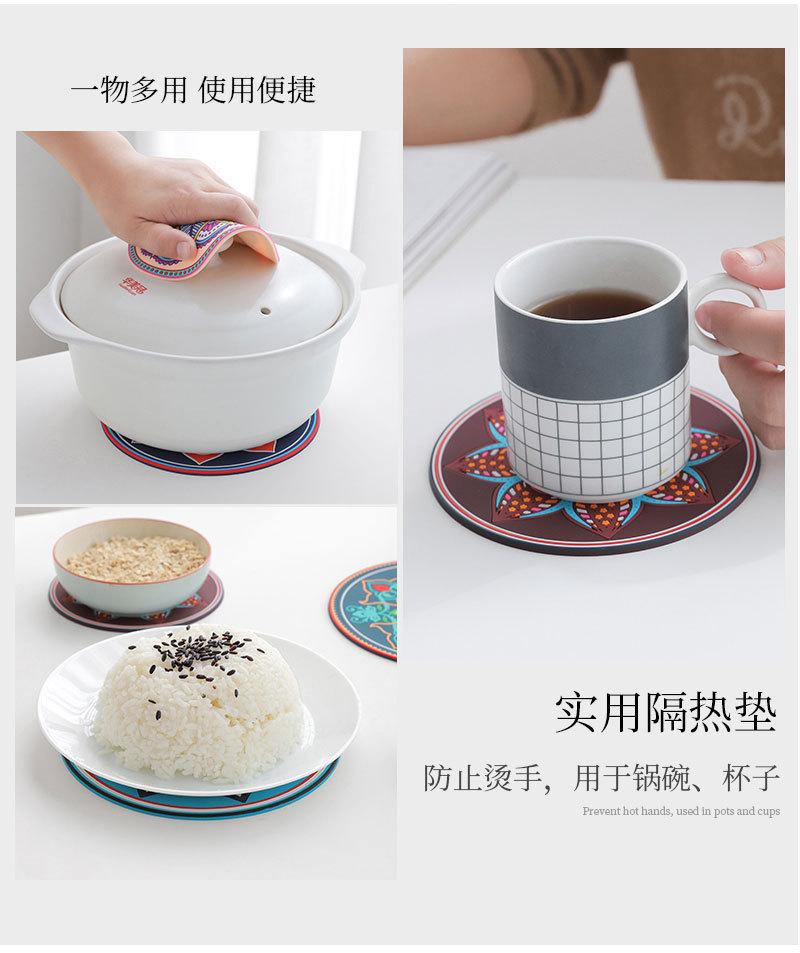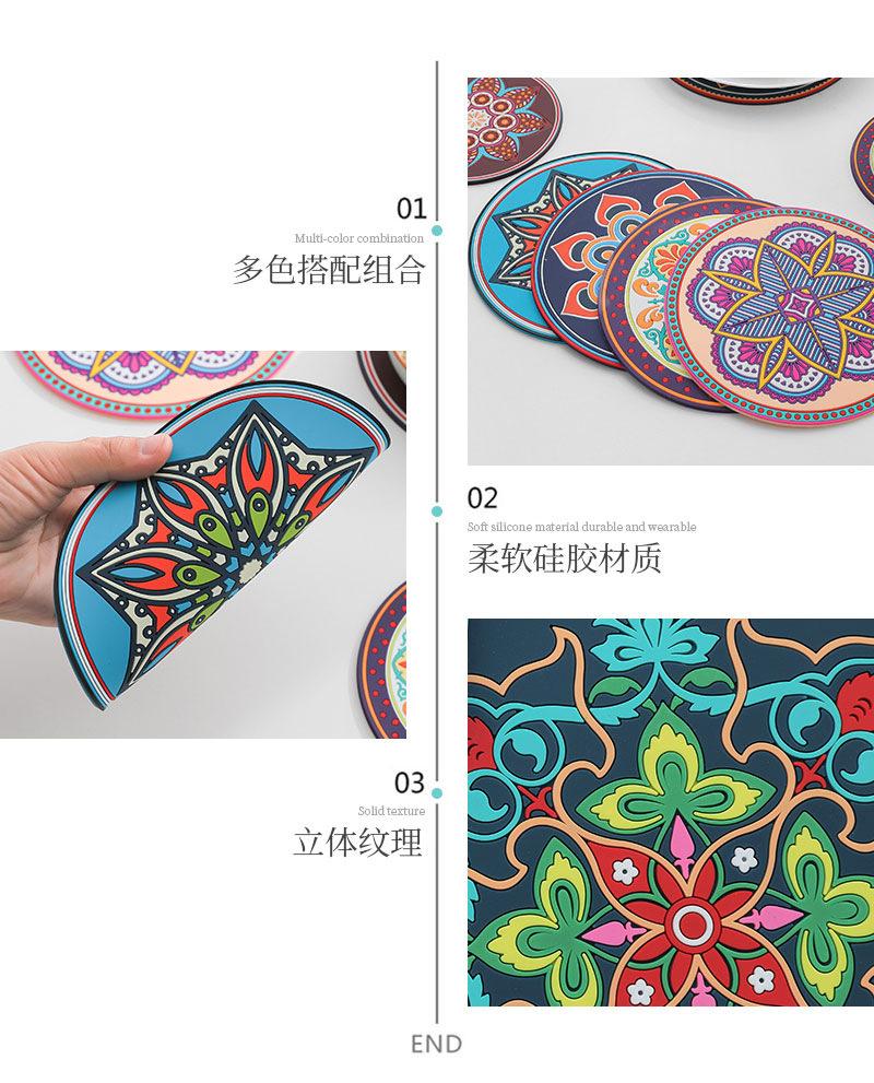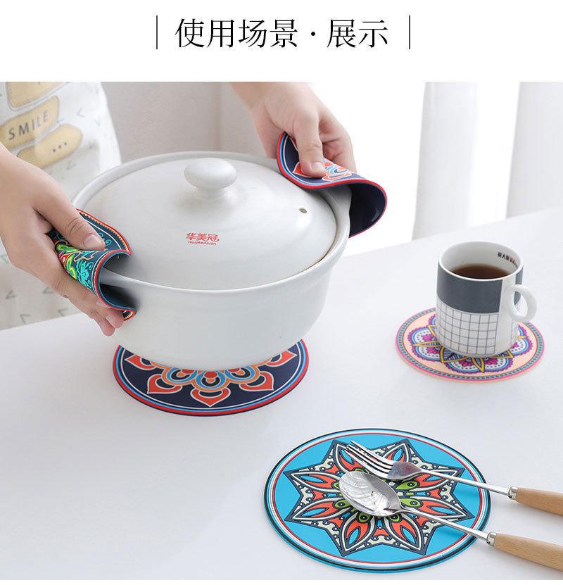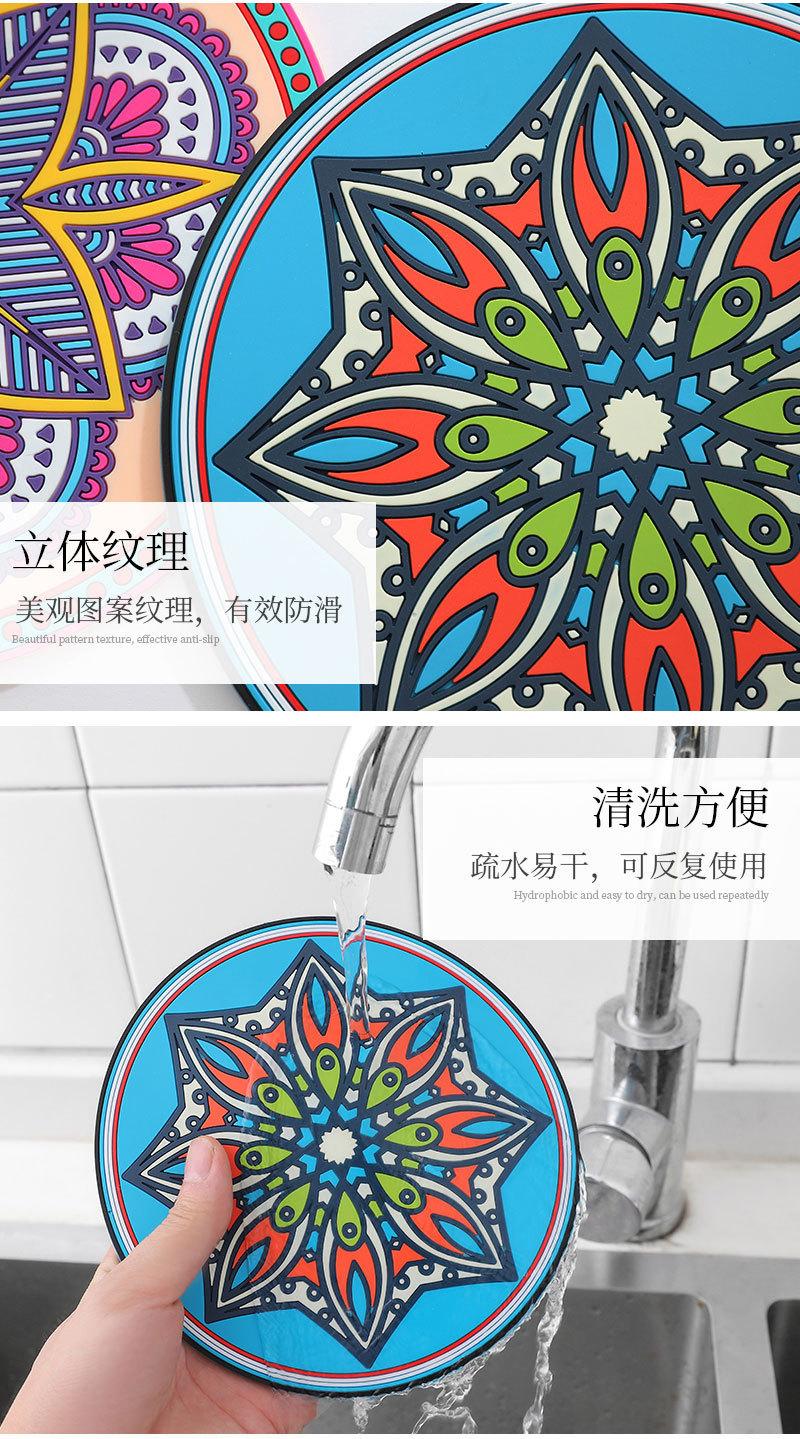 Exótico padrão retro engrossado almofada de isolamento de silicone redondo resistente a altas temperaturas isolamento térmico anti-escaldadura placemat tigela prato coaster