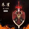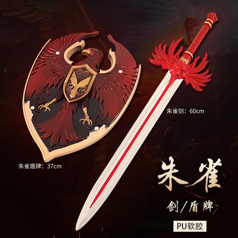 Quatro grandes armas de bestas ao redor de armas Suzaku, espada, escudo, cos, adereços de performance de palco, modelo PU, brinquedo de presente