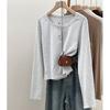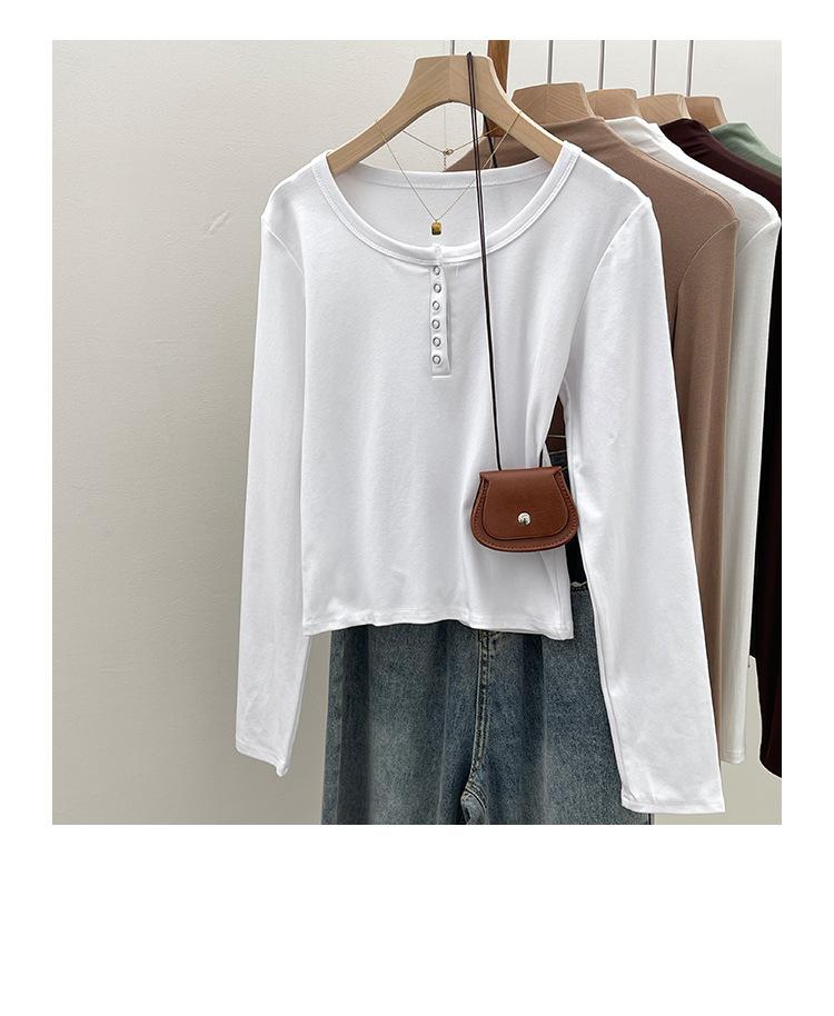 Compre Camisa de base de algodão puro, camiseta fina de manga comprida feminina, outono e inverno 2024, roupas de outono interno, estilo ocidental slim fit, top de nicho para todos os gostos no atacado no Joom.pro
