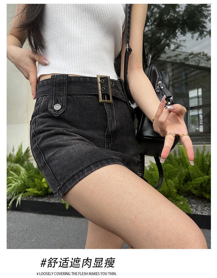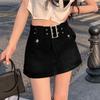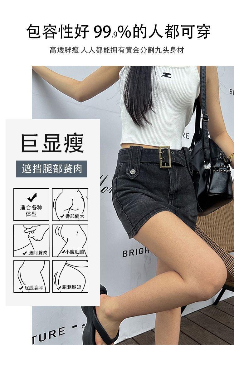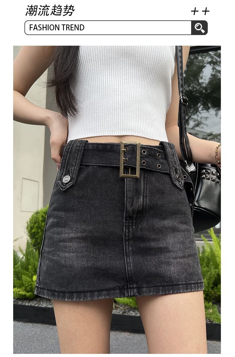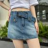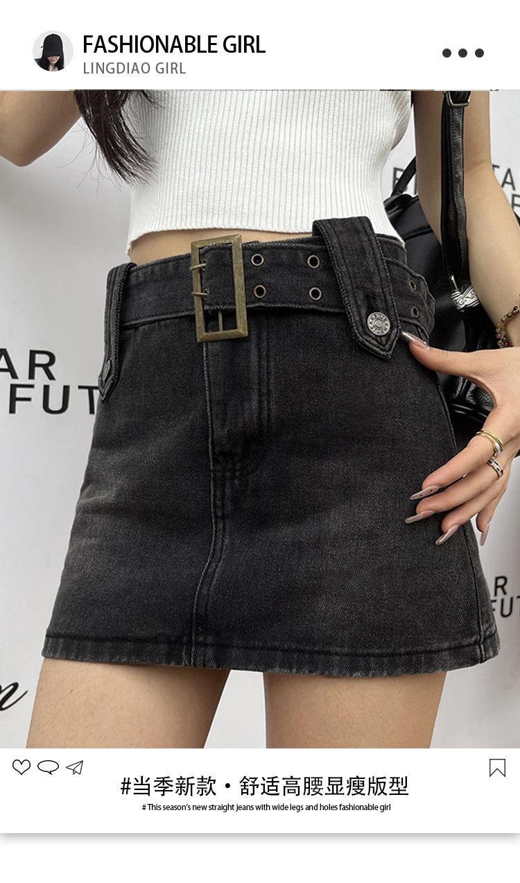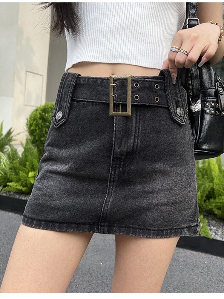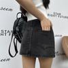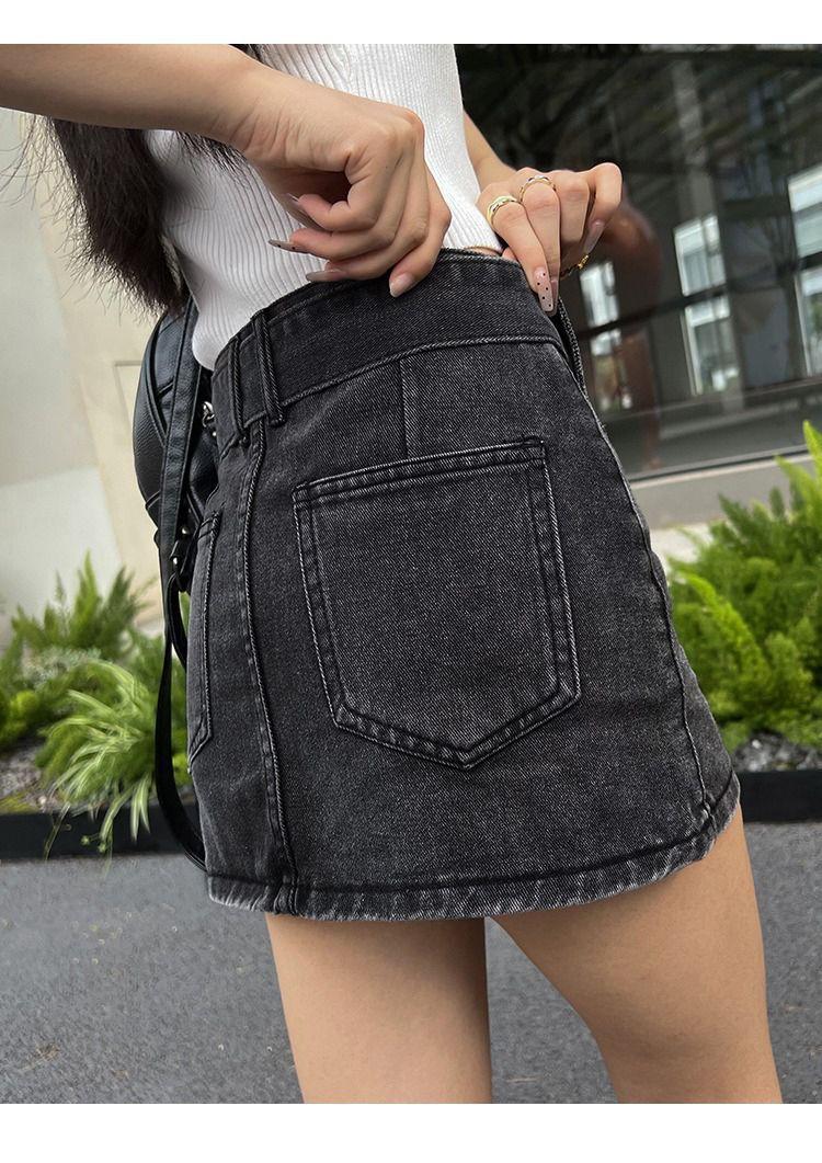 Saia jeans preta e cinza feminina 2024 Novo verão fino linha A pequeno curto quente menina saia de quadril