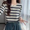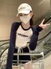Puro Algodão Estilo Americano Retro Cor Contraste Ombro Camiseta de manga comprida Primavera e Outono Design Feminina Hot Girl Short Top
