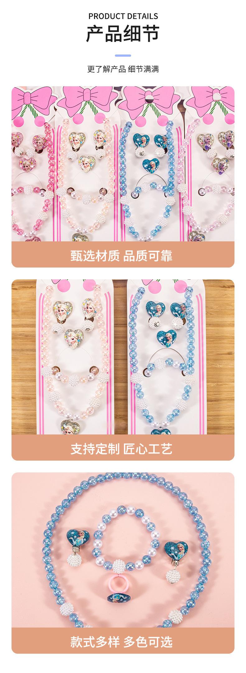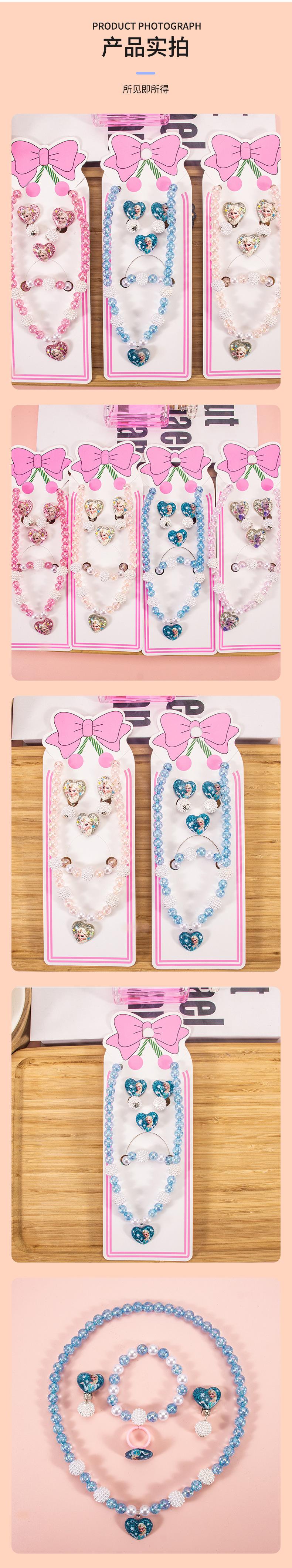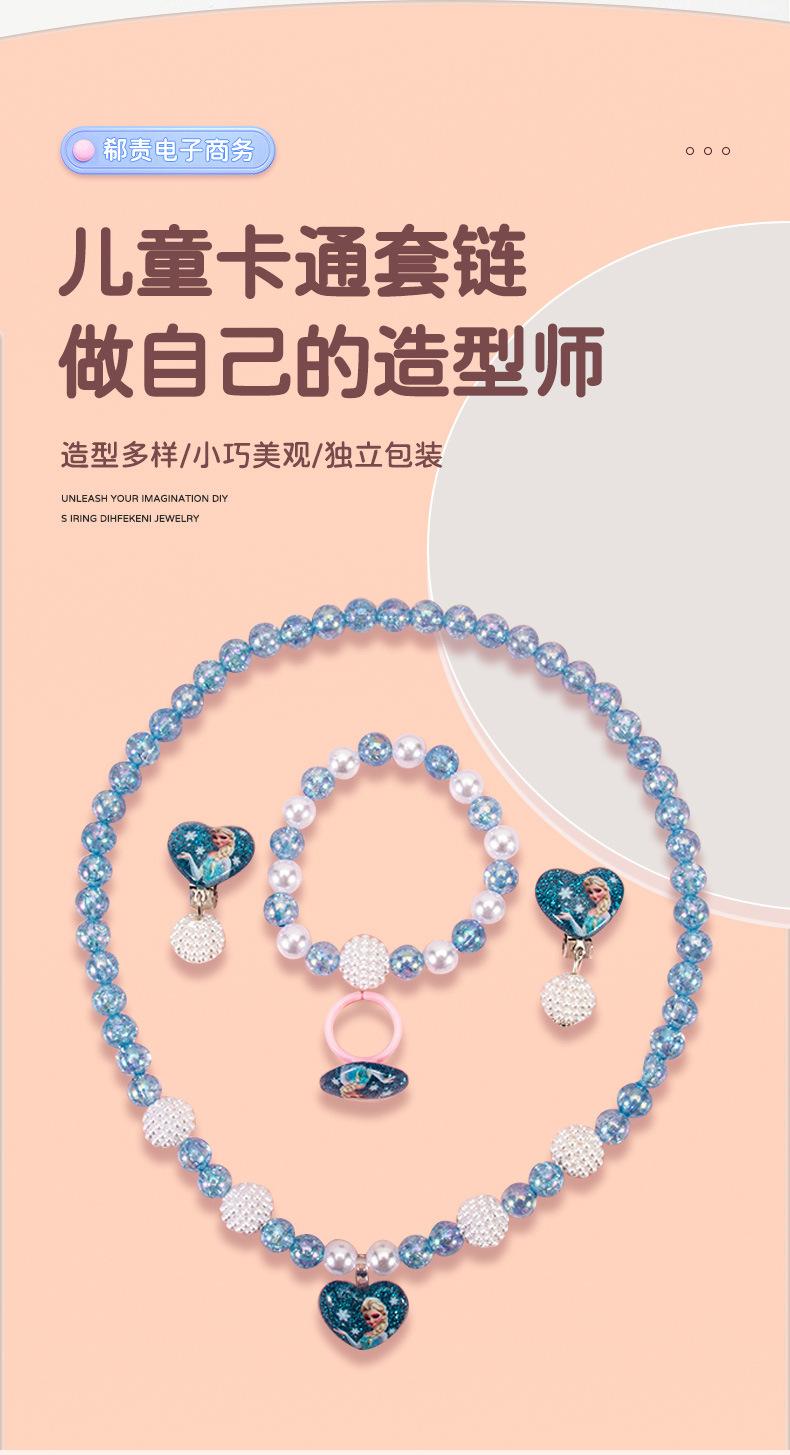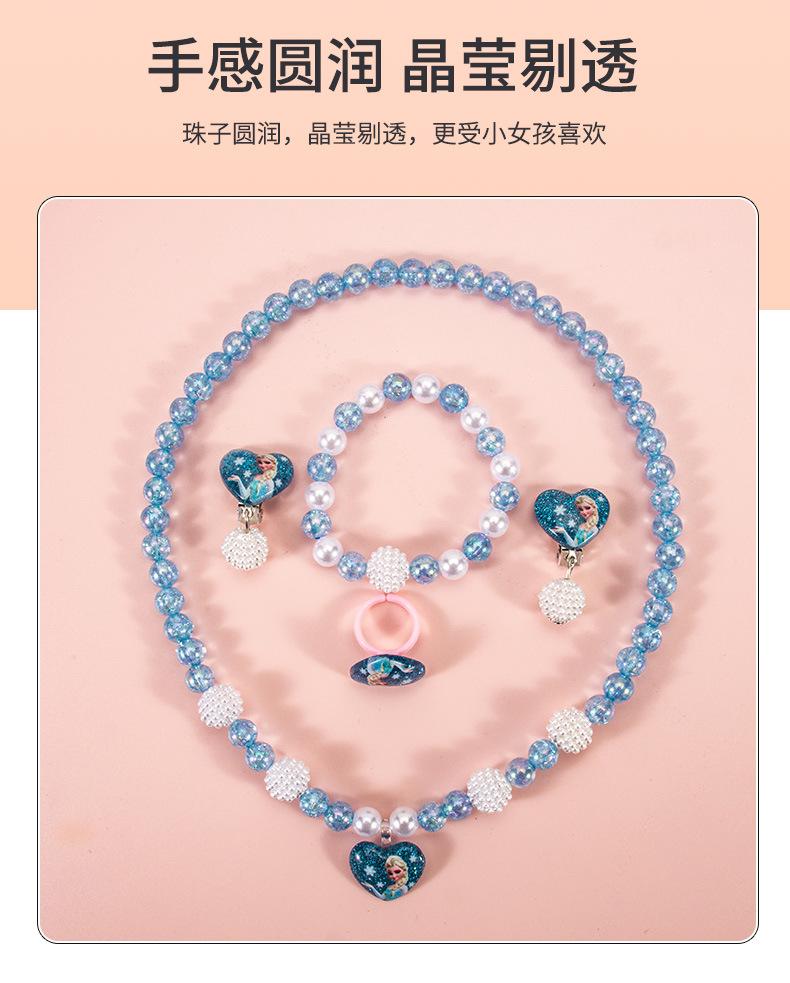 Jóias Infantis Colar Pulseira Clipe de Orelha Anel Frozen Elsa Princesa Conjunto de Brincos Personagem de Desenho Animado