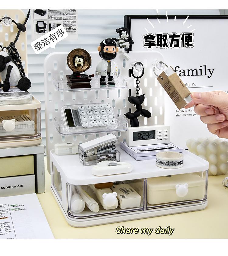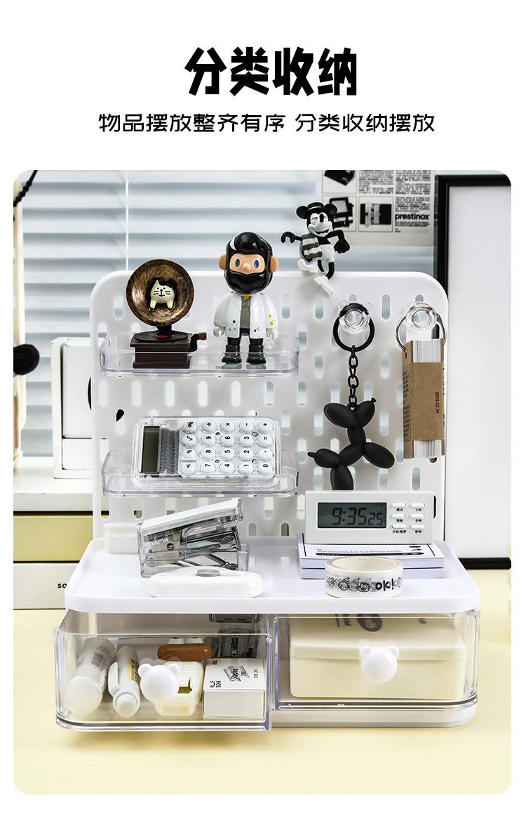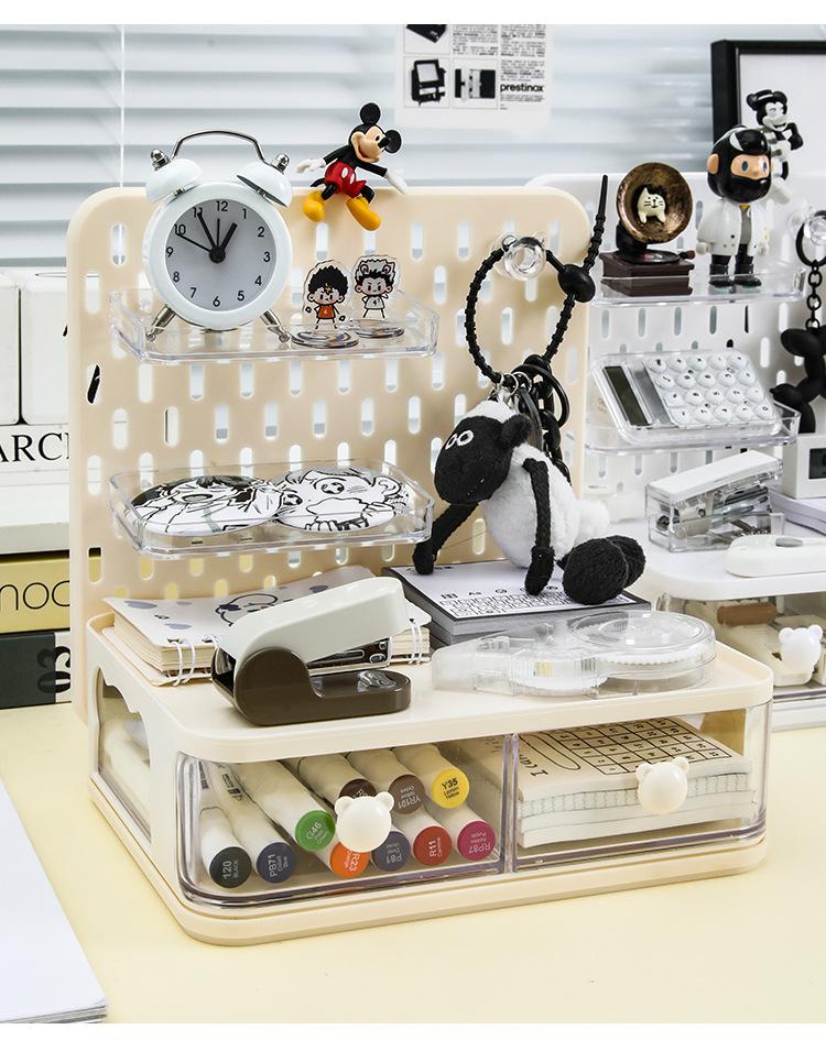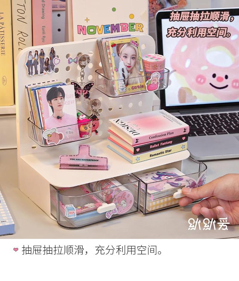 Gancho tipo gaveta furo placa de cartão pequeno Display Desktop Star-chasing Storage Box Desk Papelaria Organizador Rack