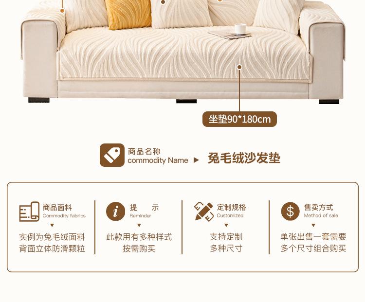 Almofadas de Sofá de Pelúcia de Coelho Transfronteiriças, Almofadas Quentes de Outono e Inverno, Capas de Sofá Antiderrapantes, Novo Tecido de Cobertura, Anti-Arranhões
