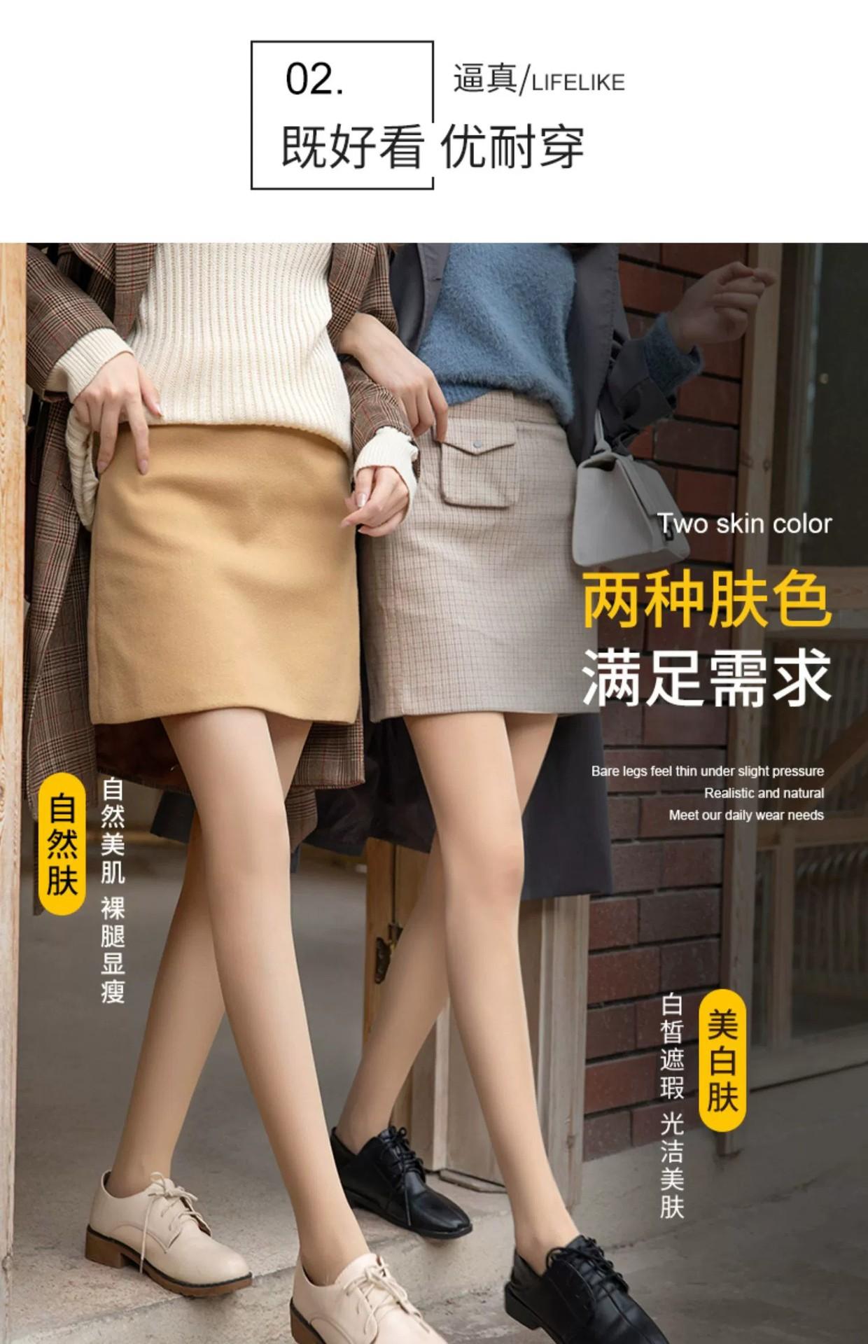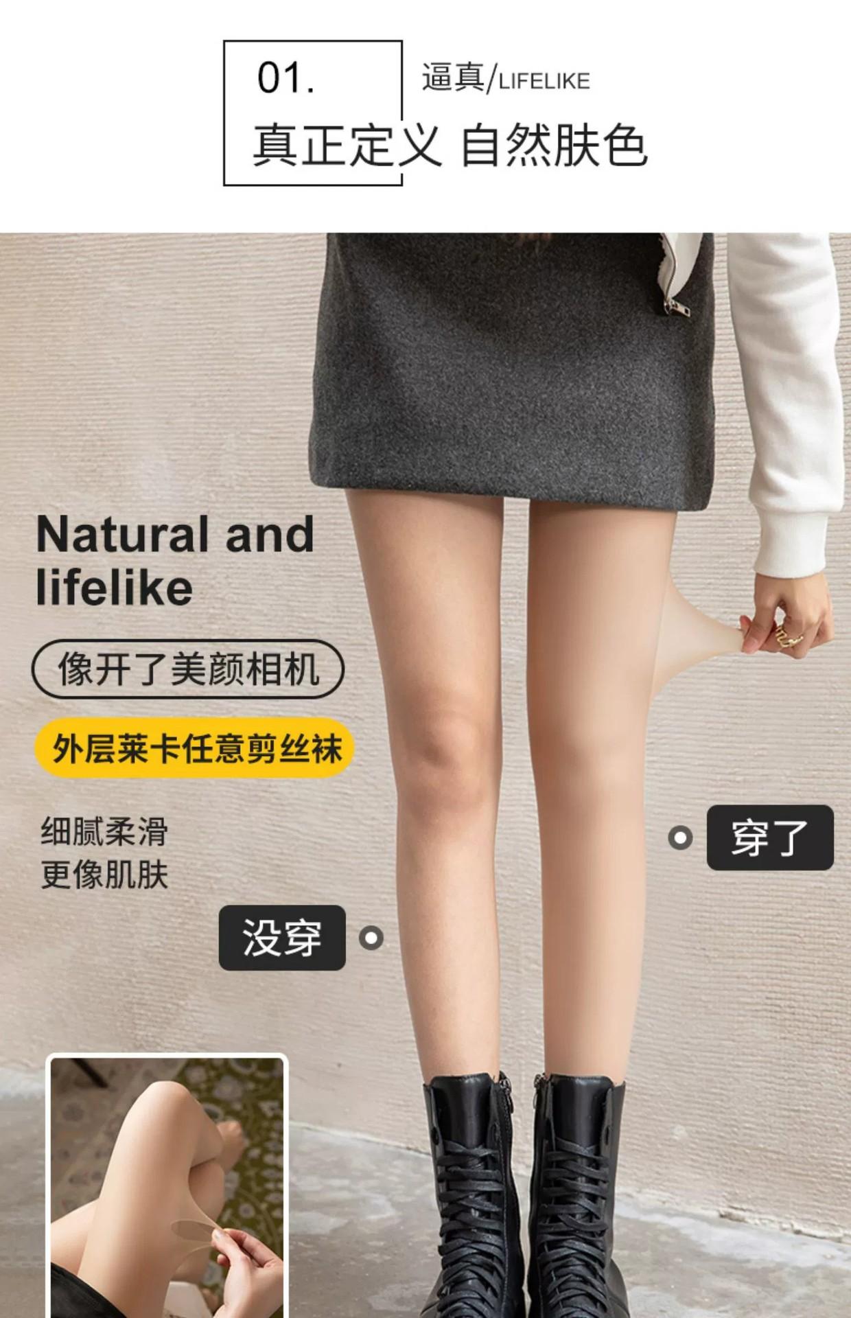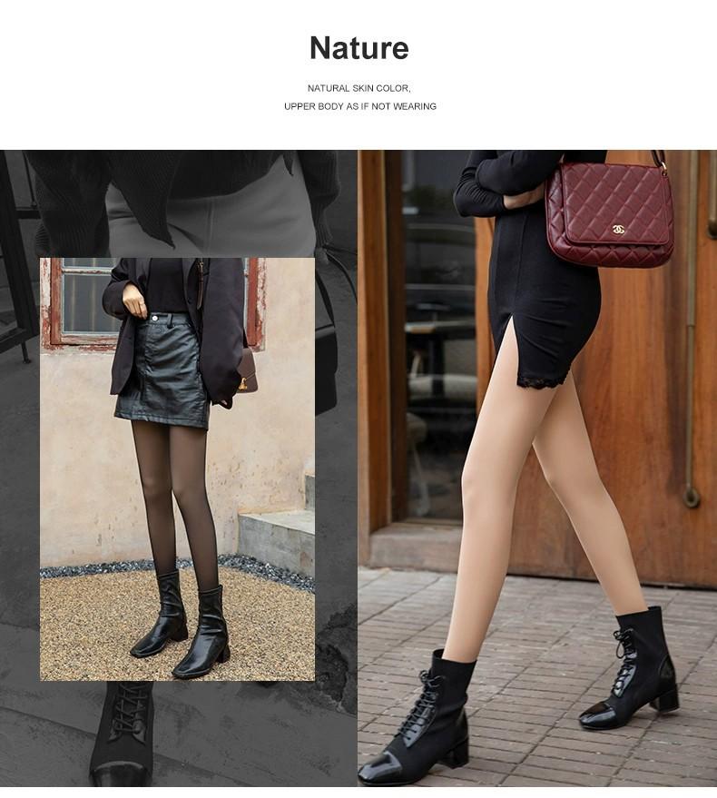 Meias-calças femininas Bare Leg Artifact, dupla camada, translúcidas e removíveis, outono e inverno, forradas com lã e espessadas, cor de pele, nude