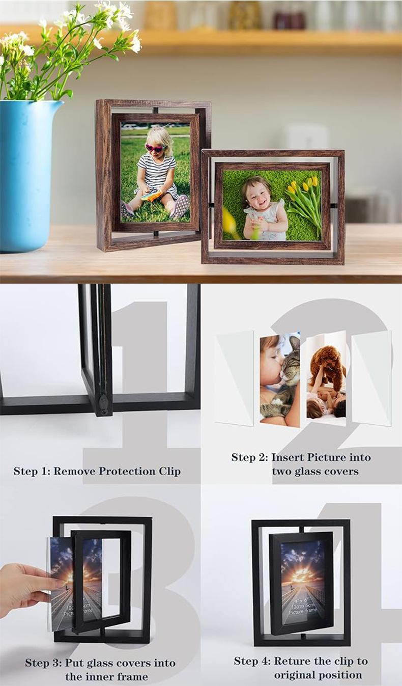 Compre Porta-Retrato Criativo Versátil Transfronteiriço de Madeira Giratório de Dupla Face Ornamentos Casal Porta-Retrato de Mesa Tridimensional Atacado no atacado no Joom.pro