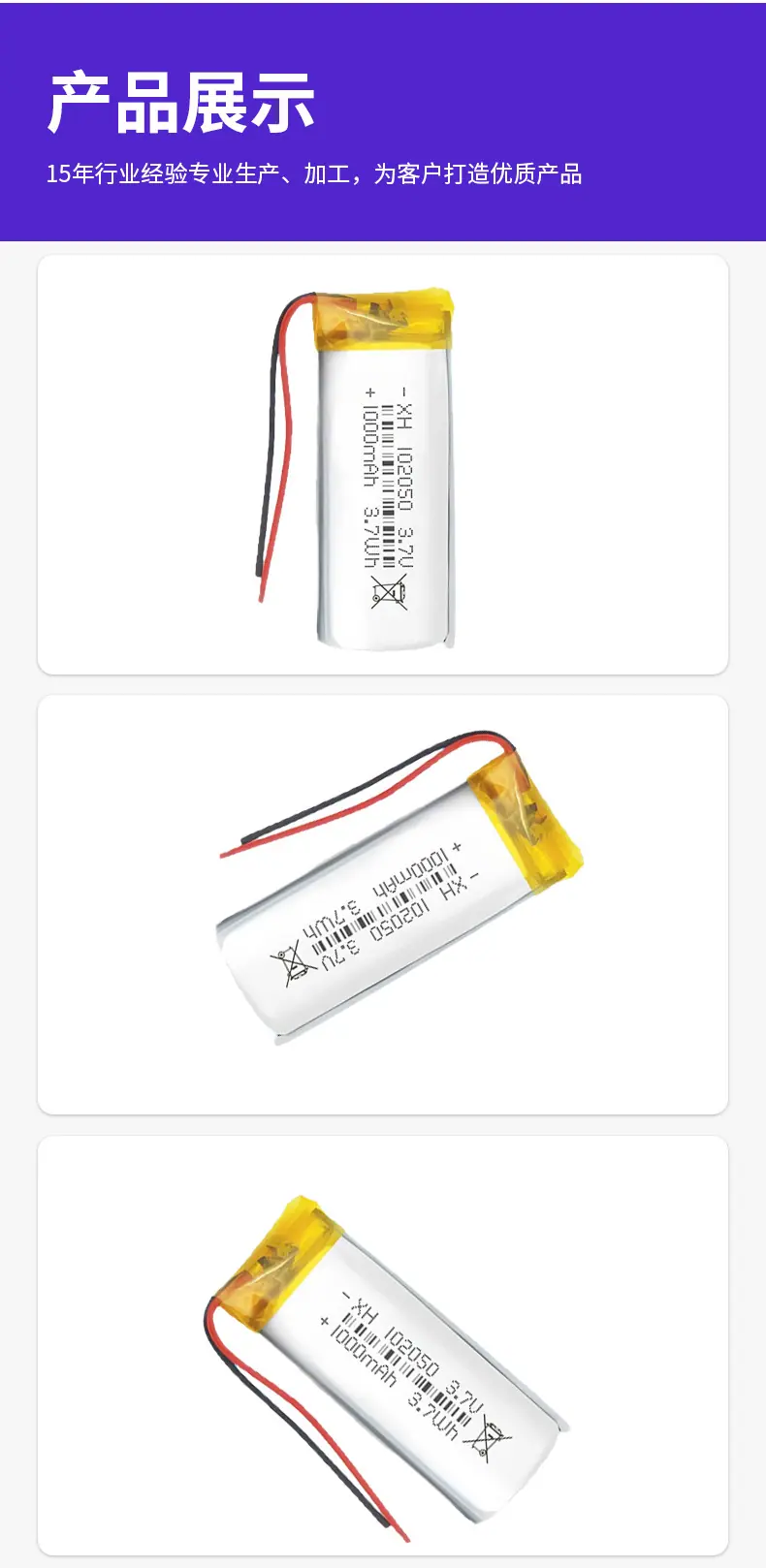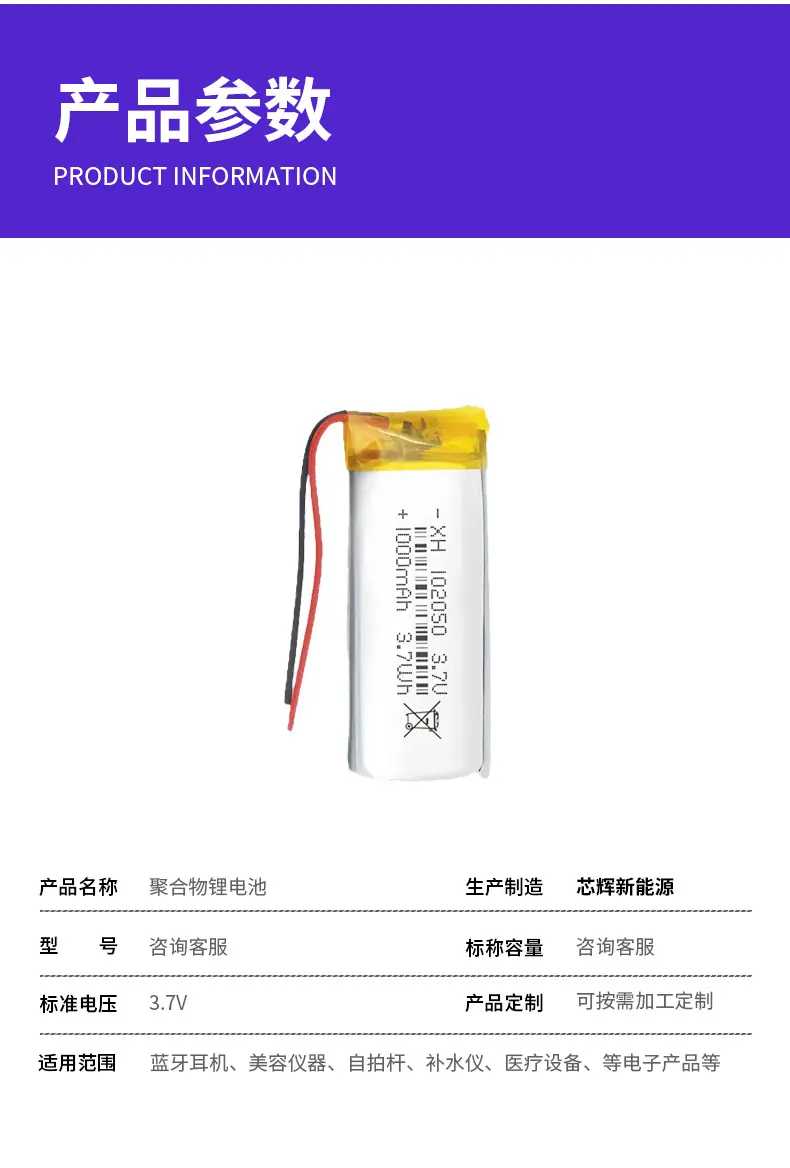 102050/1000mAh battery cell