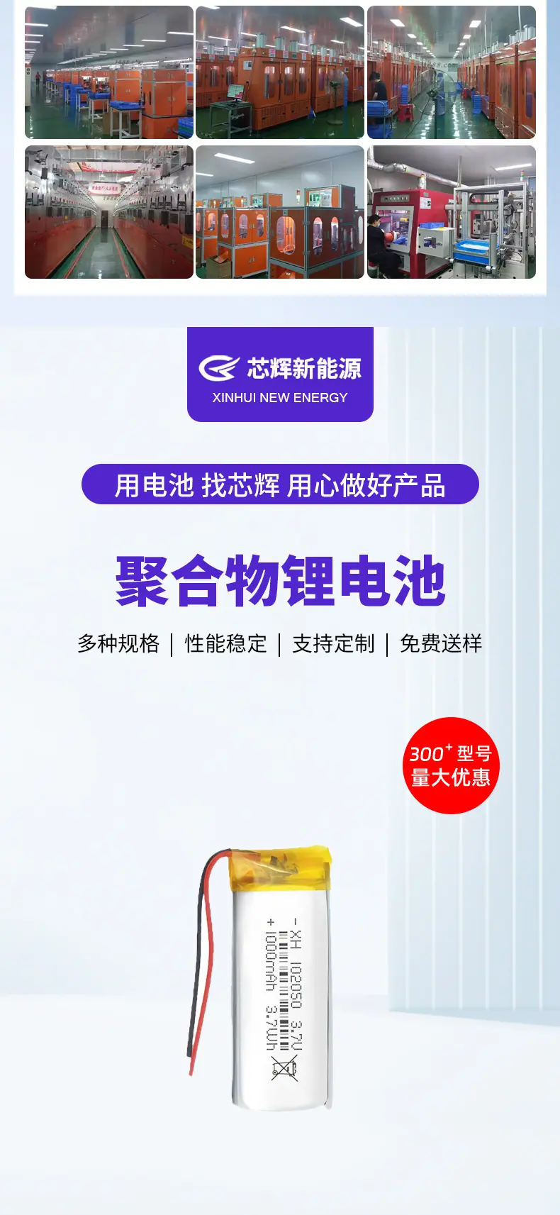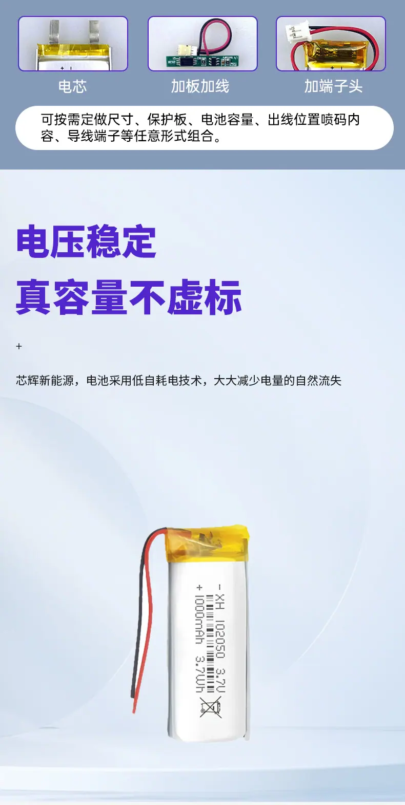 102050/1000mAh battery cell, 102050/1000mAh plus plate cable