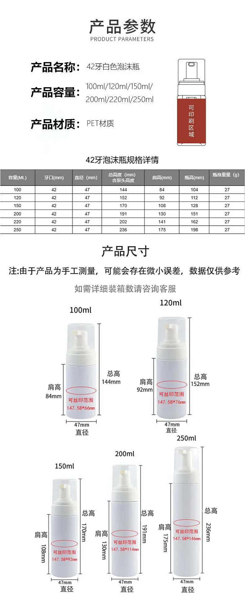 100ml; 42 teeth white bottle black pump transparent cap; pet