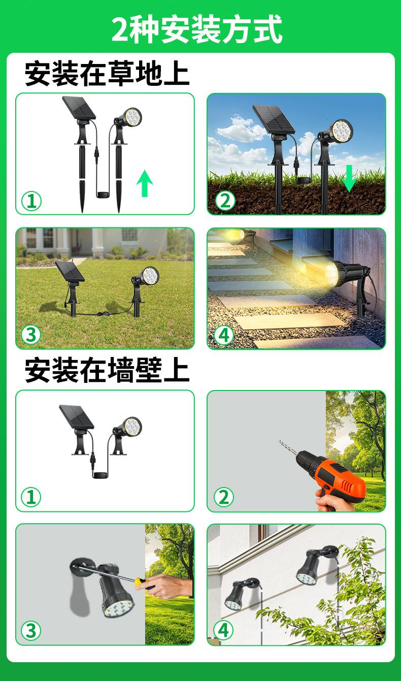 Lâmpada Solar de Gramado Transfronteiriça À Prova d'Água para Exterior Refletor Solar de Pátio Decoração de Jardim Iluminação de Plantas Lâmpada de Chão para Árvores