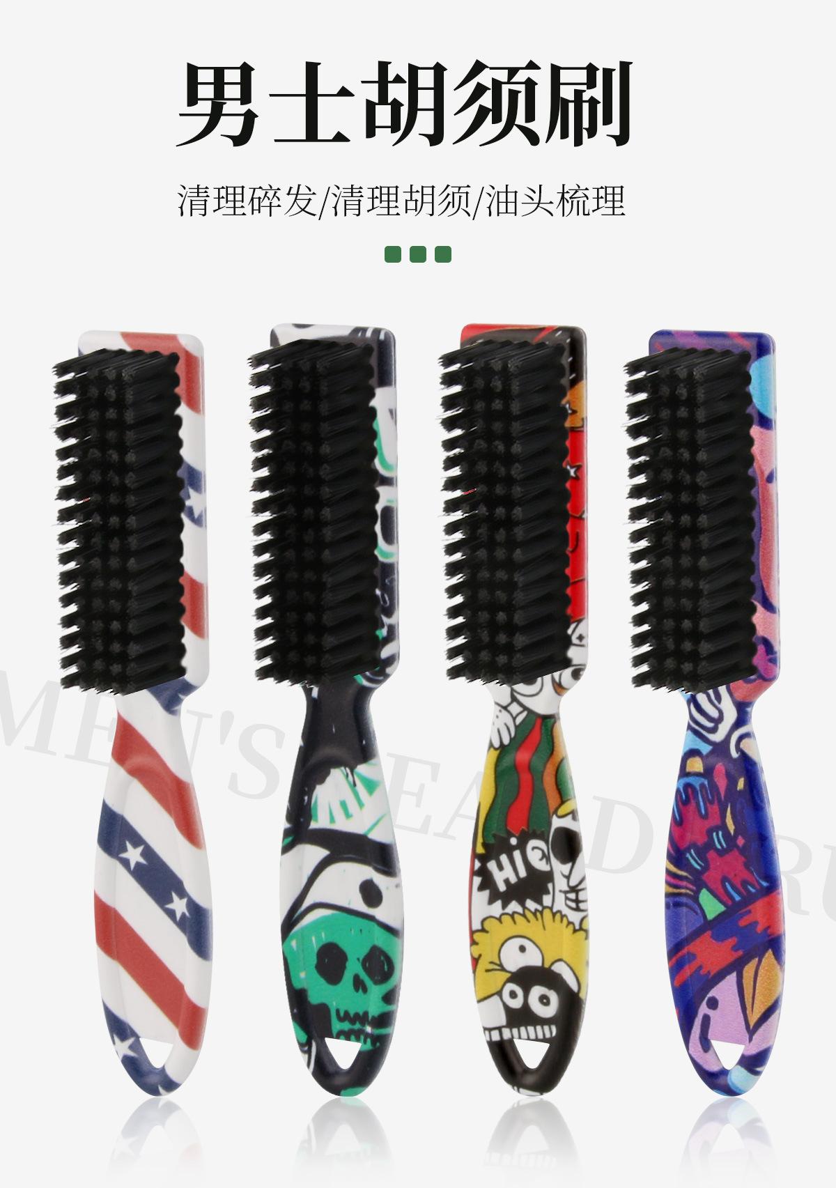 Escova de barba masculina com padrão transfronteiriço, vermelha, branca e azul, para cabelos quebrados, escova de limpeza de cabelo, pente de óleo para estilizar barba