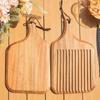 Tábua de pizza de madeira maciça, tábua de corte de madeira de acácia, tábua de corte estilo country americano com alça, prato de jantar de bife, bandeja de pão de madeira