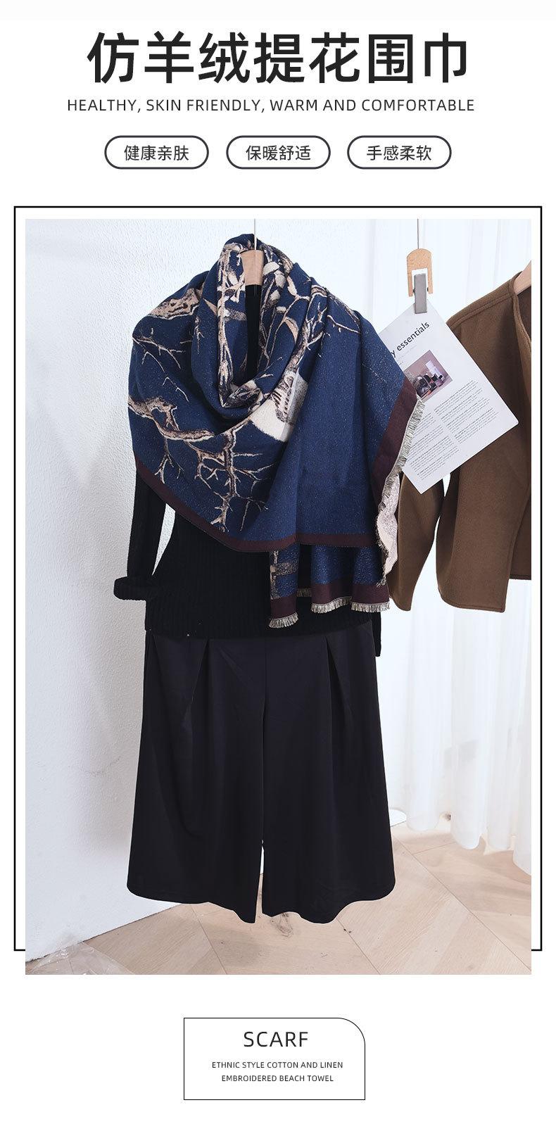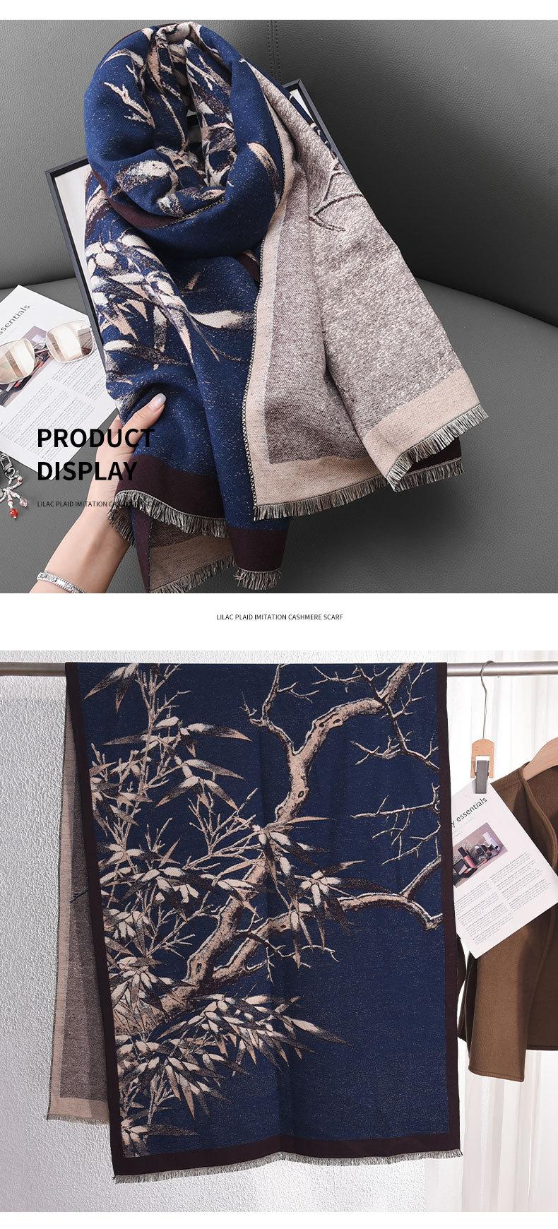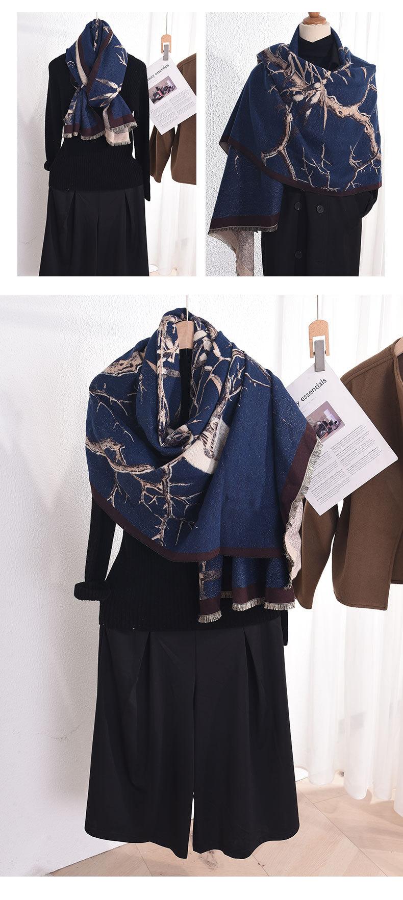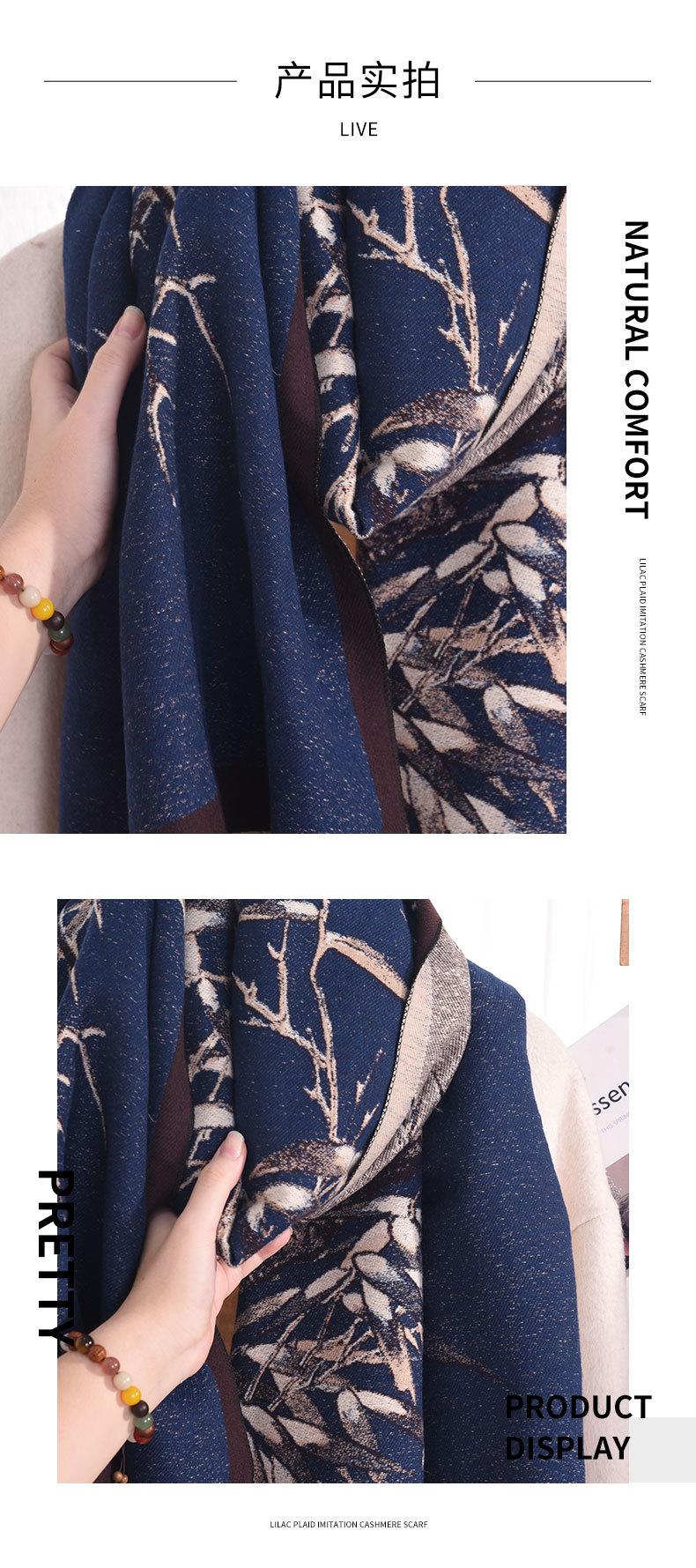 Outono e inverno estilo artístico retro elegante galho impresso cachecol estilo coreano feminino high-end elegante quente xale