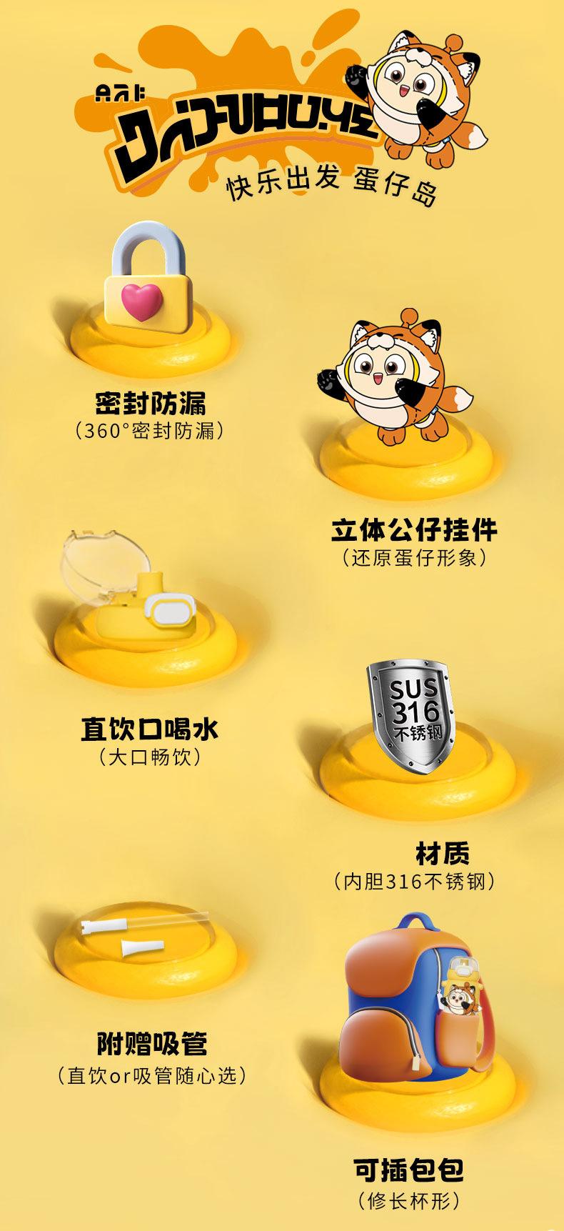 Garrafa térmica para festa de ovos, de aço inoxidável 316, com alto valor de cor, ventosa de desenho animado para crianças, garrafa de água portátil para estudantes