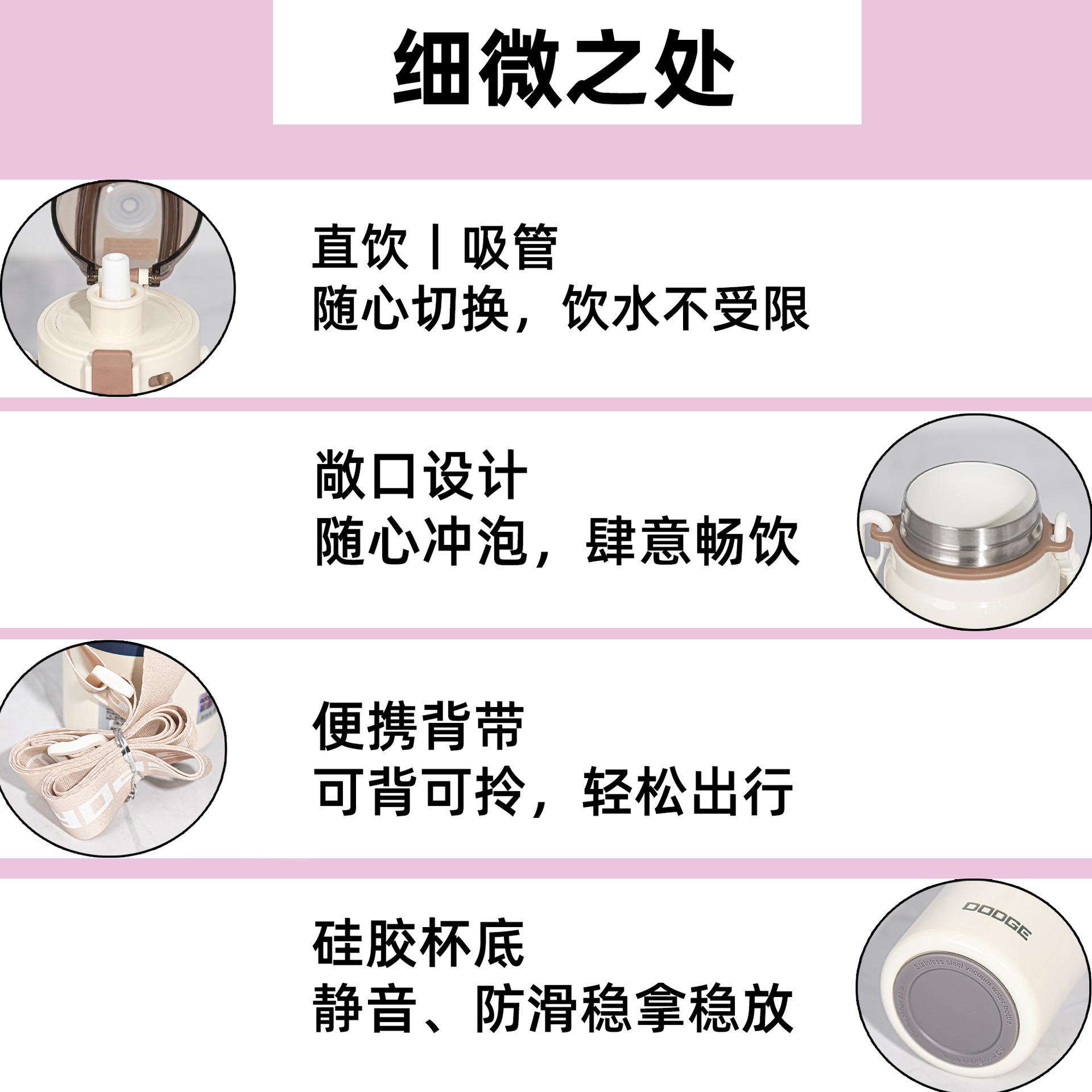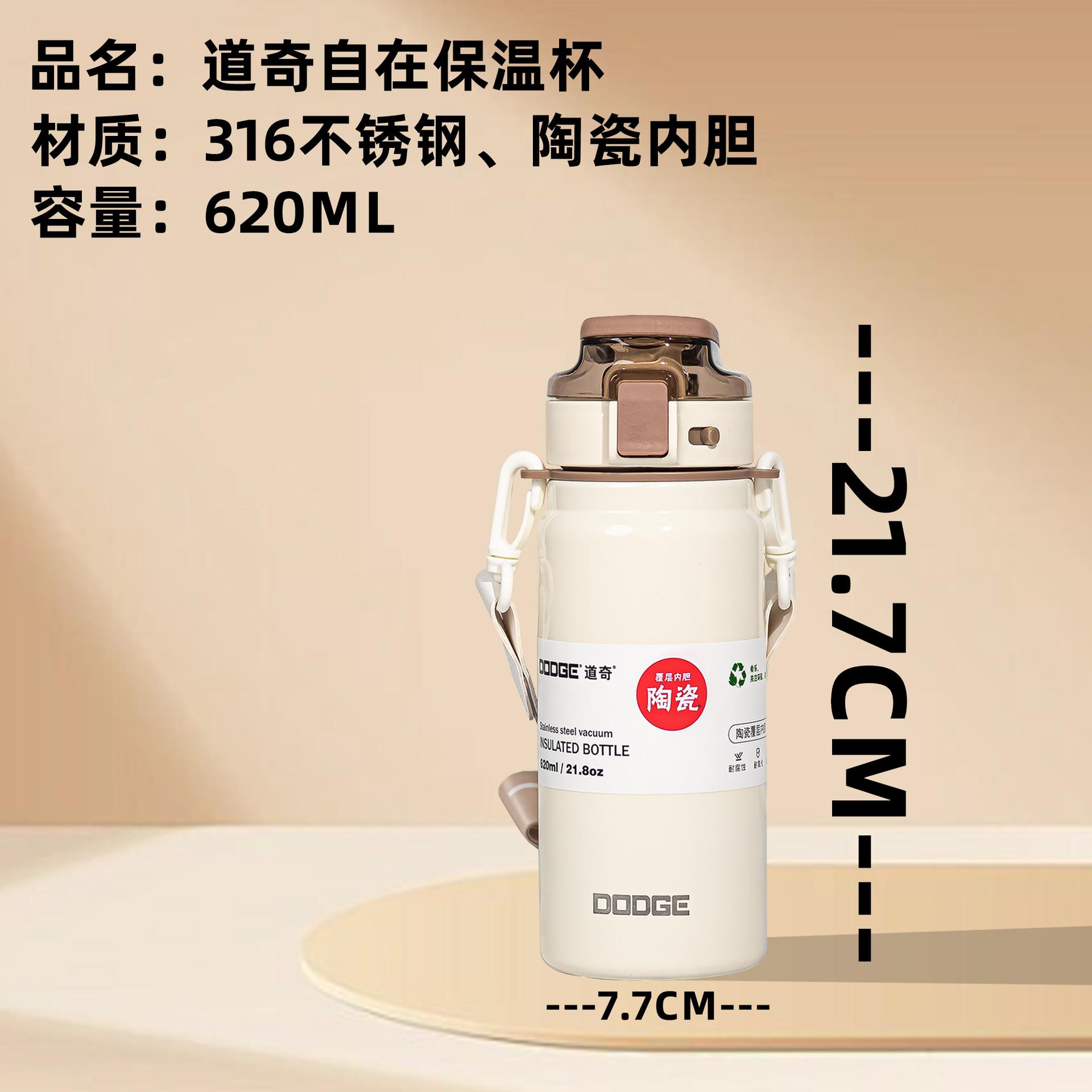 Dodge cerâmica forro térmico copo meninas cinta garrafa de água potável portátil grande capacidade esportes casual café copo