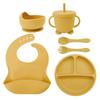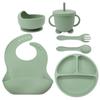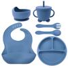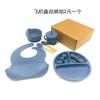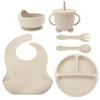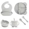 Ash six-piece set (560g) bib + small suction cup + bowl + straw cup + wooden fork and spoon