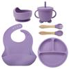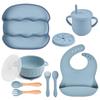Colher de silicone para bebê tigela de silicone talheres de silicone conjunto de oito peças / terno de talheres de silicone para crianças / tigela complementar