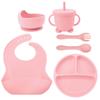 Pink eight-piece set (620g) bib + small suction cup + bowl + straw cup + bear fork + wooden fork and spoon, Lo...