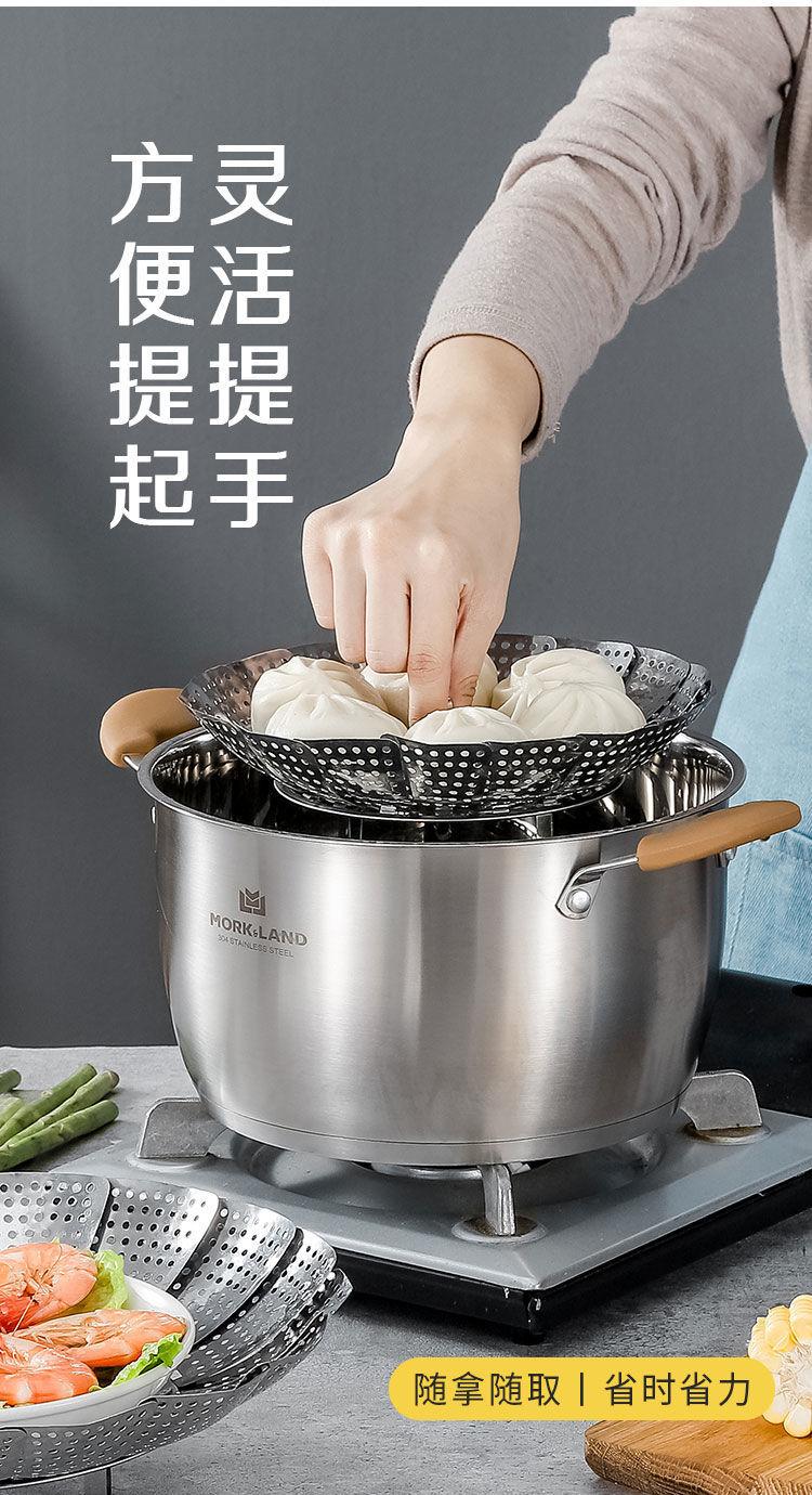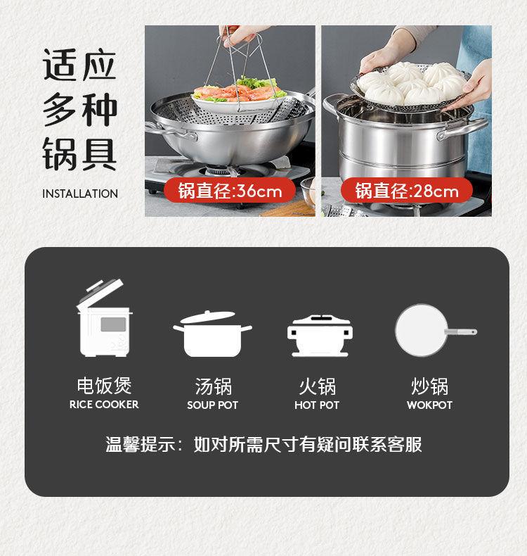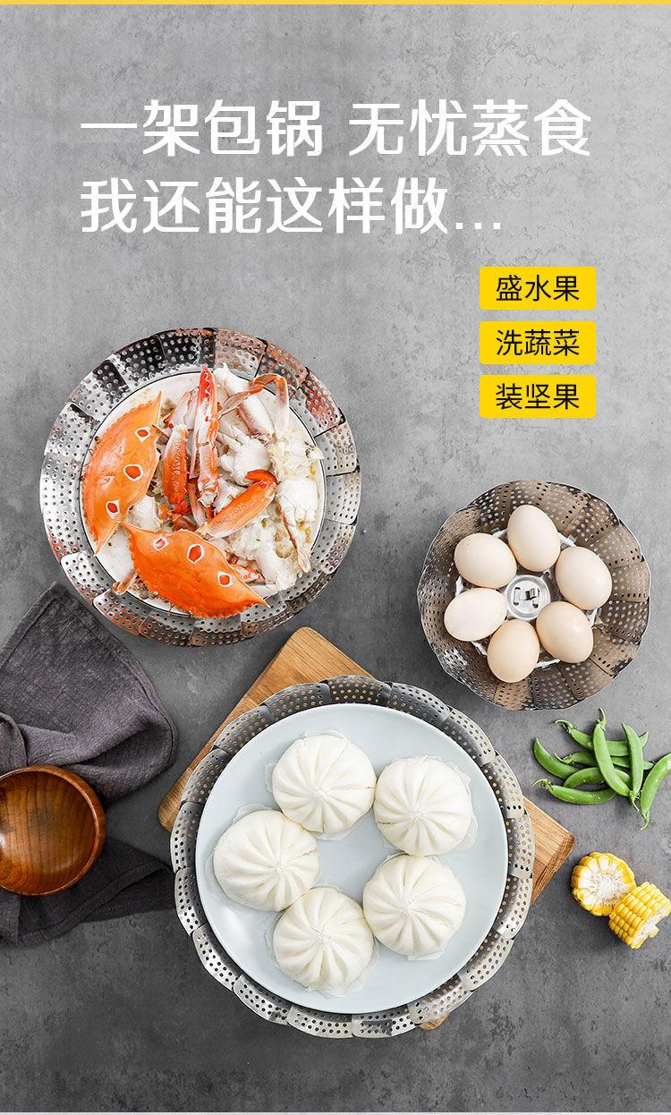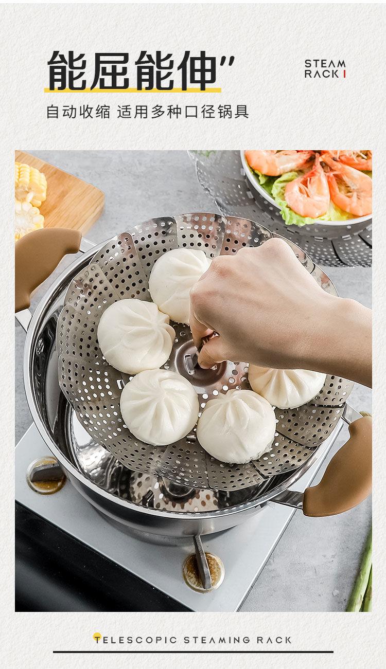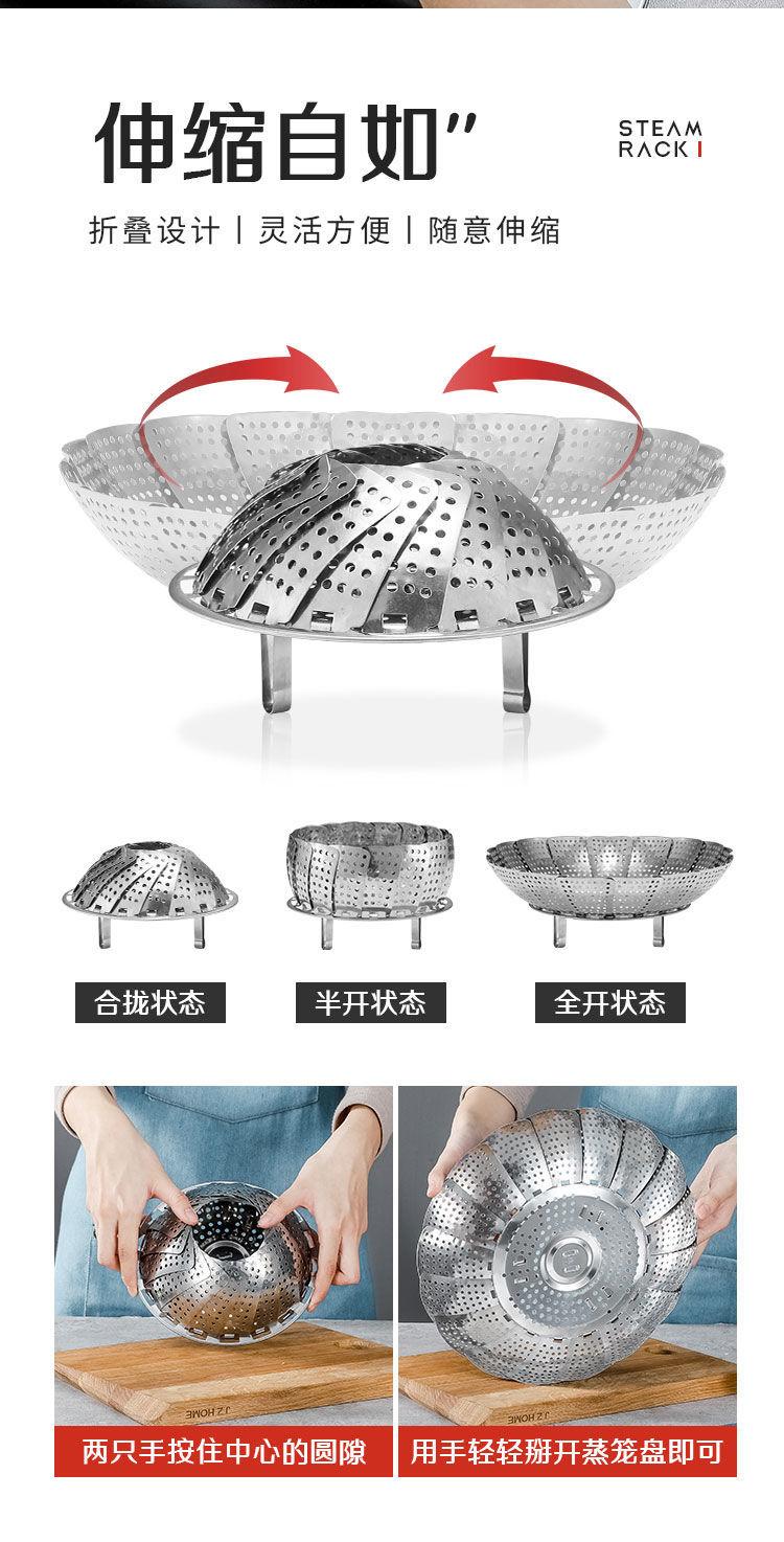 Vaporizador doméstico de aço inoxidável Vaporizador Gaveta Vaporizador Rack Pão cozido no vapor Pãezinhos cozidos no vapor Vapor Vapor telescópico dobrável
