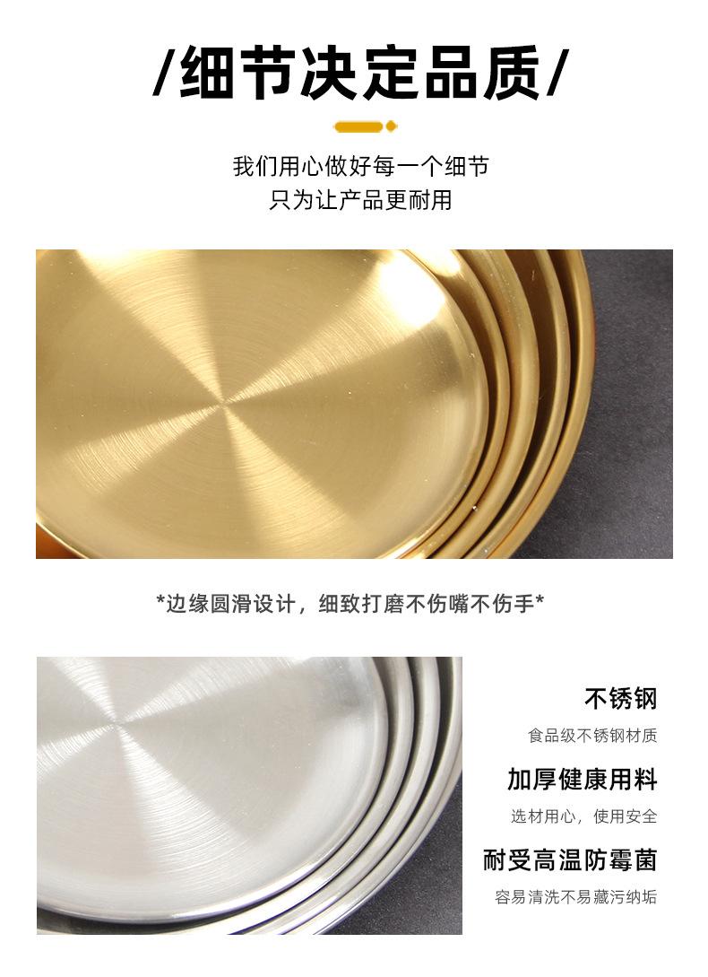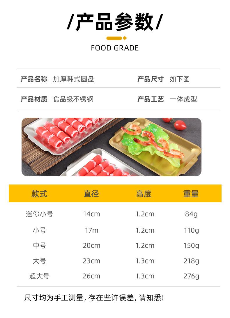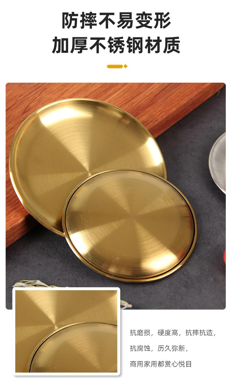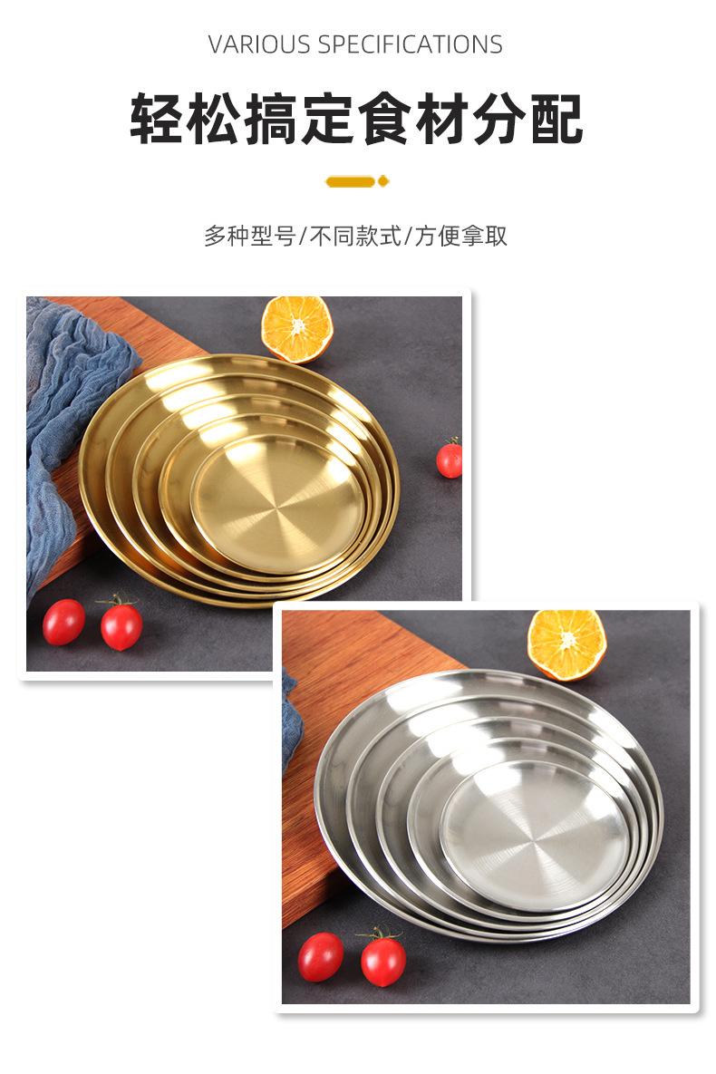 Placa de aço inoxidável Placa de churrasco coreana Disco dourado Bandeja coreana comercial Prato de frutas Prato de bolo Prato de salada
