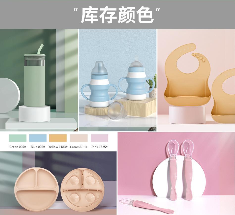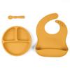 Yellow three-piece set (dinner plate + saliva pocket + regular spoon), Blue three-piece set (dinner plate + sa...