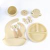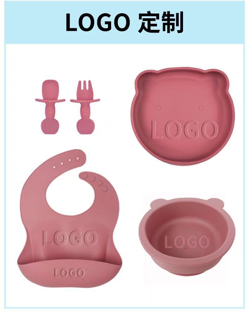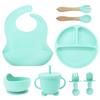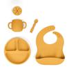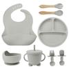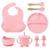 Prato de Jantar de Silicone para Crianças, Babador, Tigela para Alimentos, Copo com Canudo, Alimentação de Mãe e Bebê, Conjunto Combinado de Talheres de Silicone para Crianças
