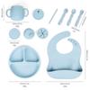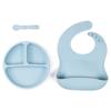Blue three-piece set (dinner plate + saliva pocket + regular spoon)