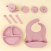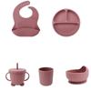 Dark pink 8-piece set (bib + small suction cup + bowl + bear straw cup + wooden fork + bear fork and spoon) 599g