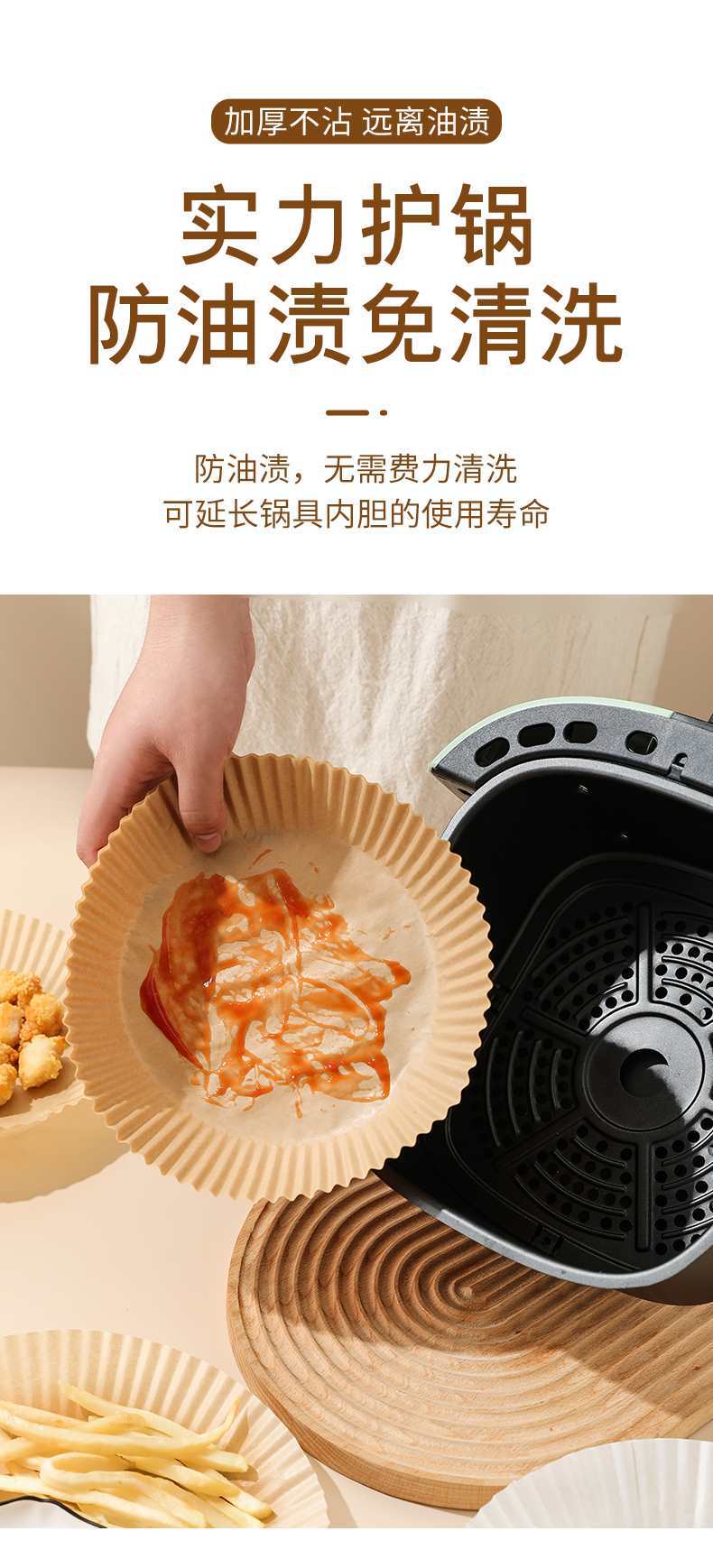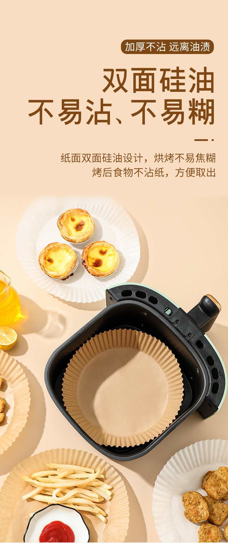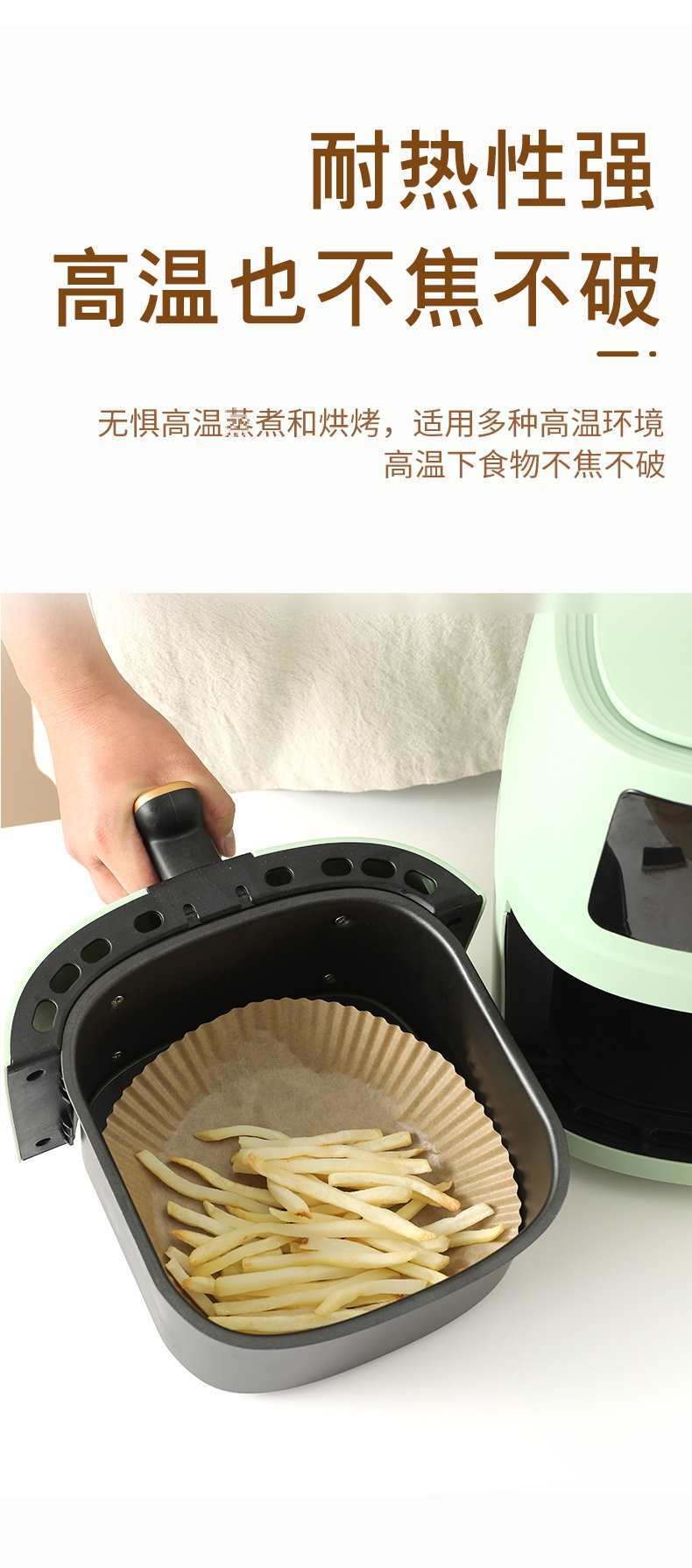 Tigela de papel para fritadeira de ar de grau alimentício, redonda, quadrada, absorvente de óleo, papel de lata, forno, utensílios domésticos, almofada de silicone para assar óleo