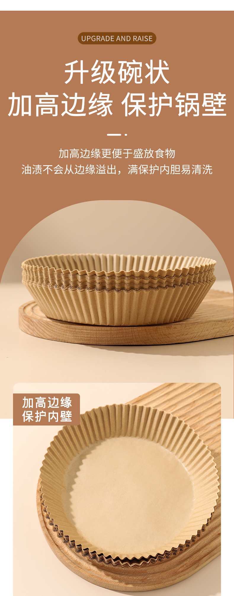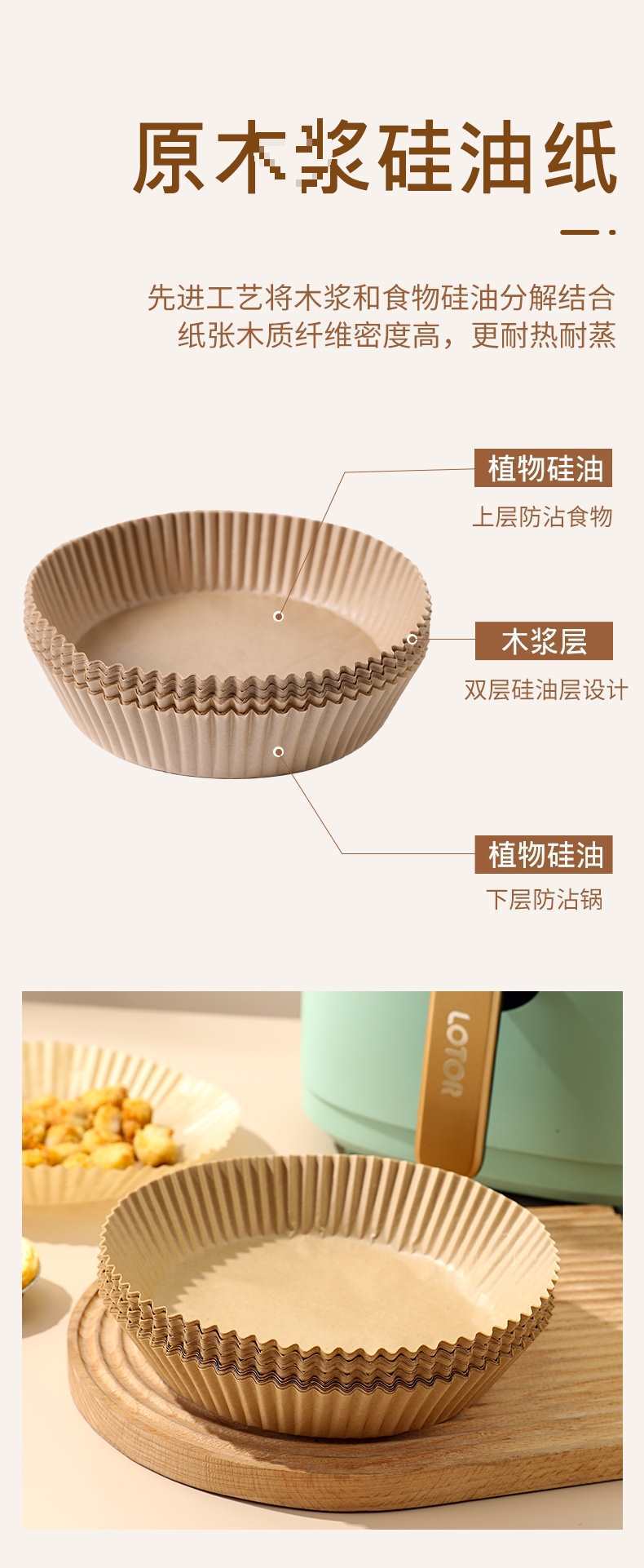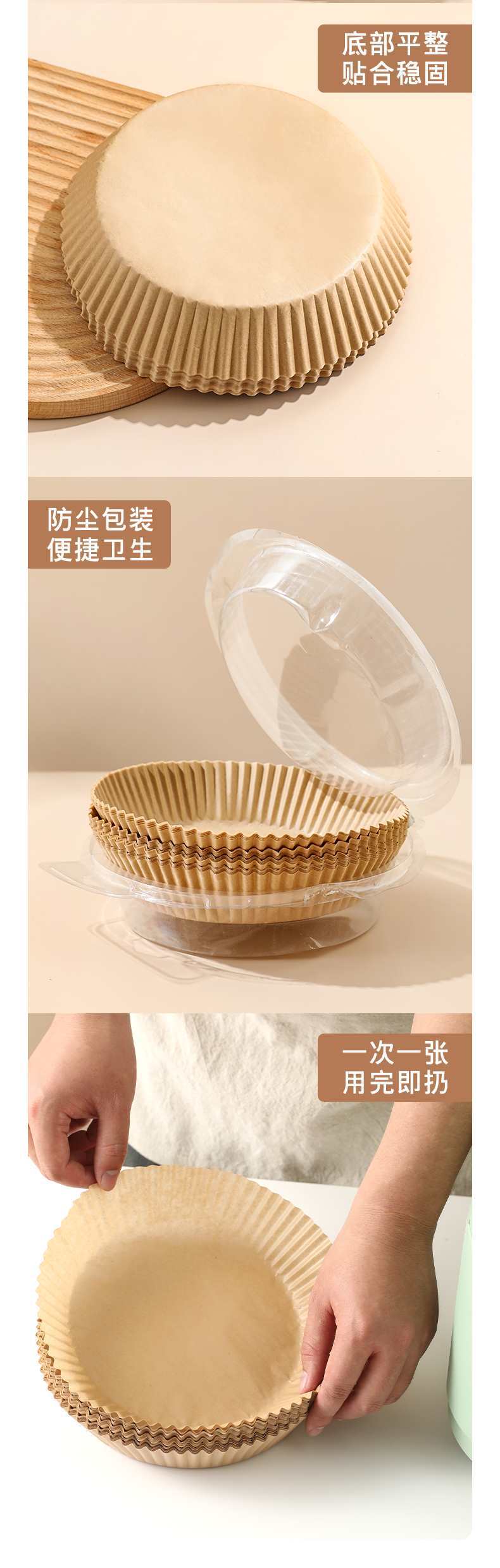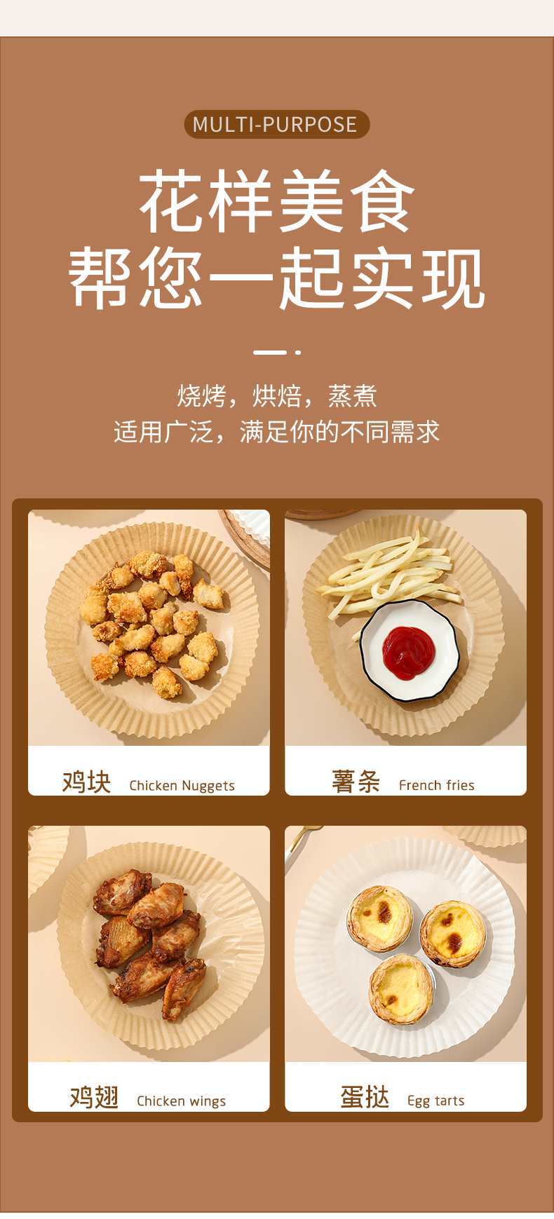 Tigela de papel para fritadeira de ar de grau alimentício, redonda, quadrada, absorvente de óleo, papel de lata, forno, utensílios domésticos, almofada de silicone para assar óleo