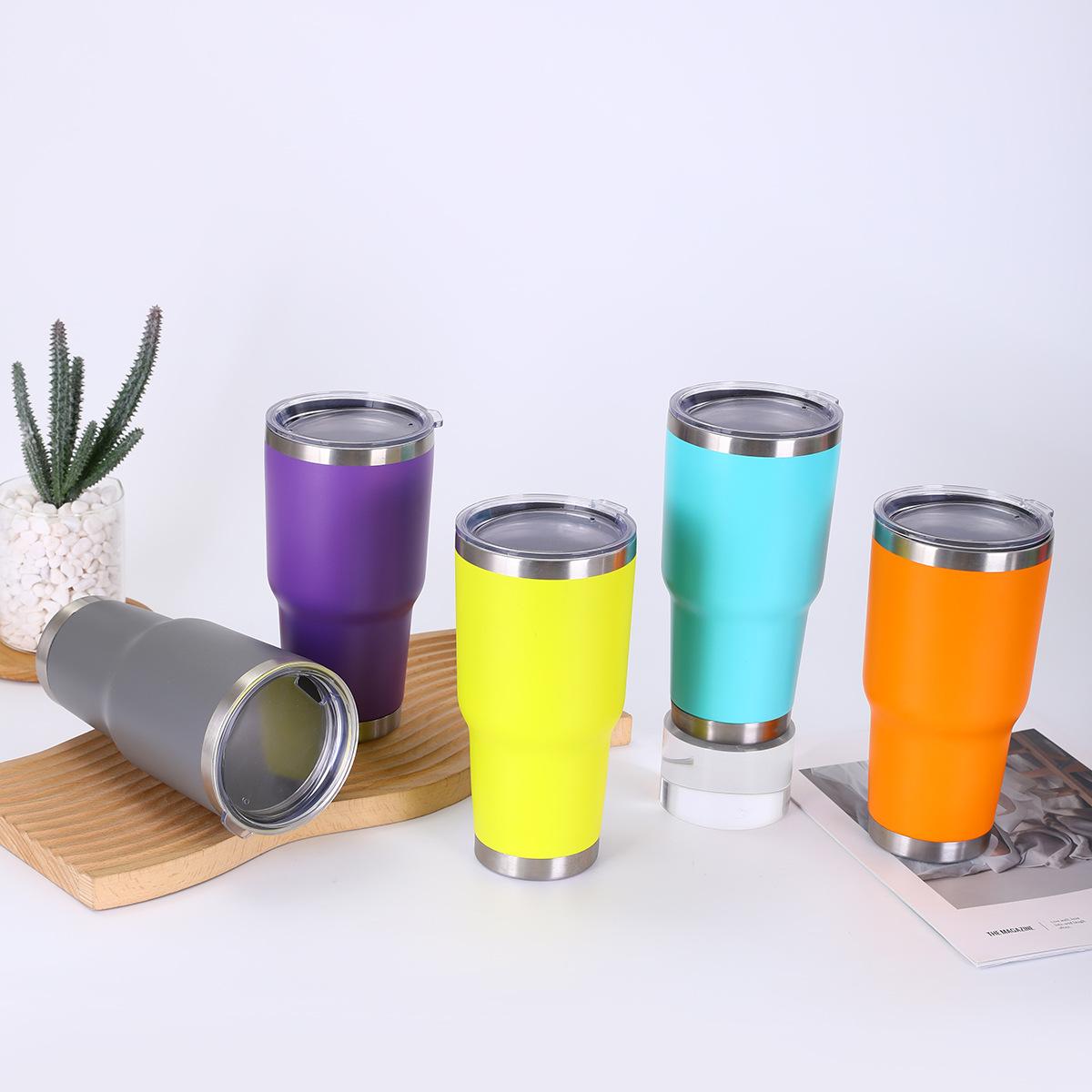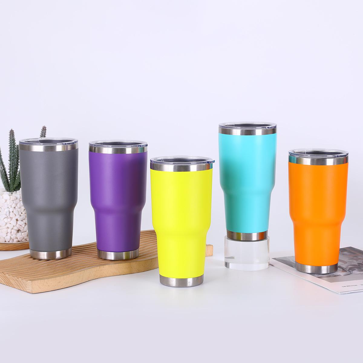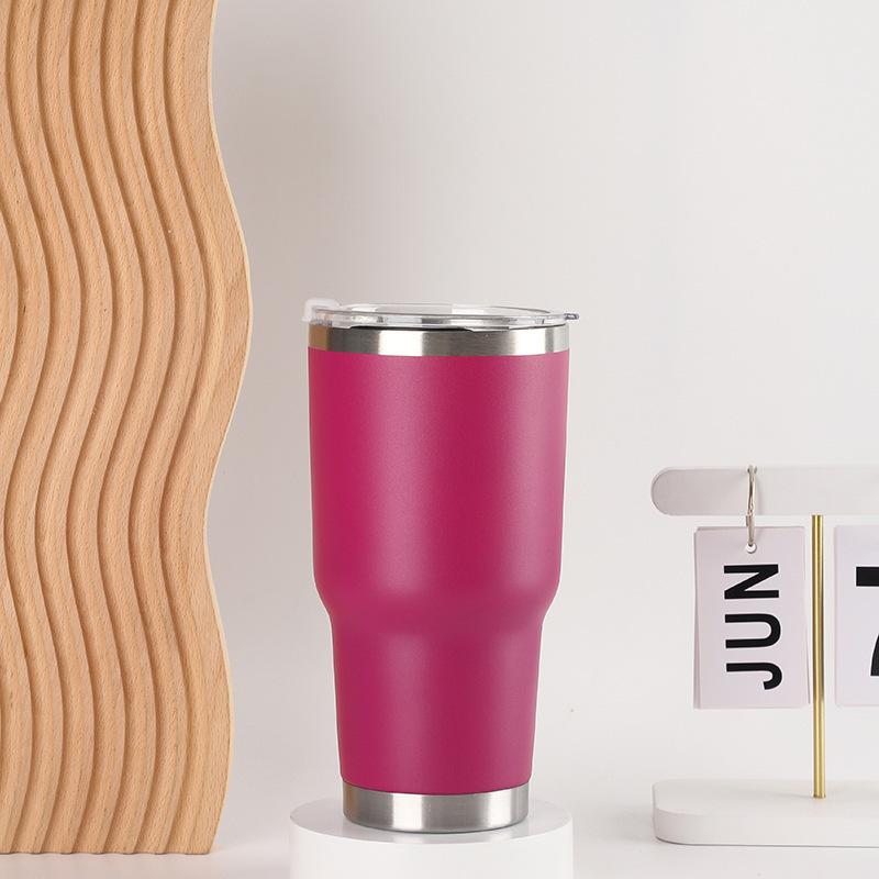 Cross-border 30oz carro copo de carro 304 copo térmico de aço inoxidável simples cor sólida plástico spray copo frio gelo valentão copo