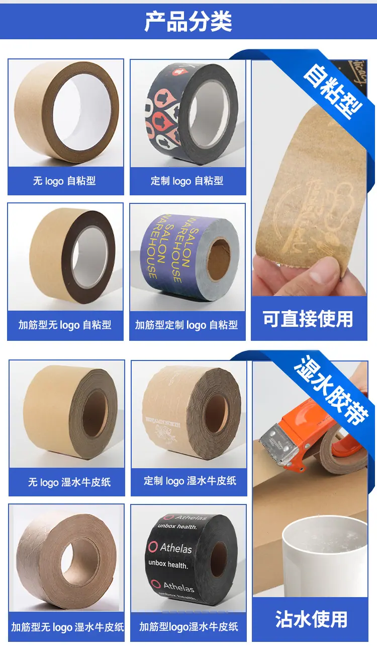 Impressão de Fita Personalizável com Impressão de Logotipo com Água Molhada, Fita de Papel Kraft Selante com Reforço, Fita para Selar e Escrever