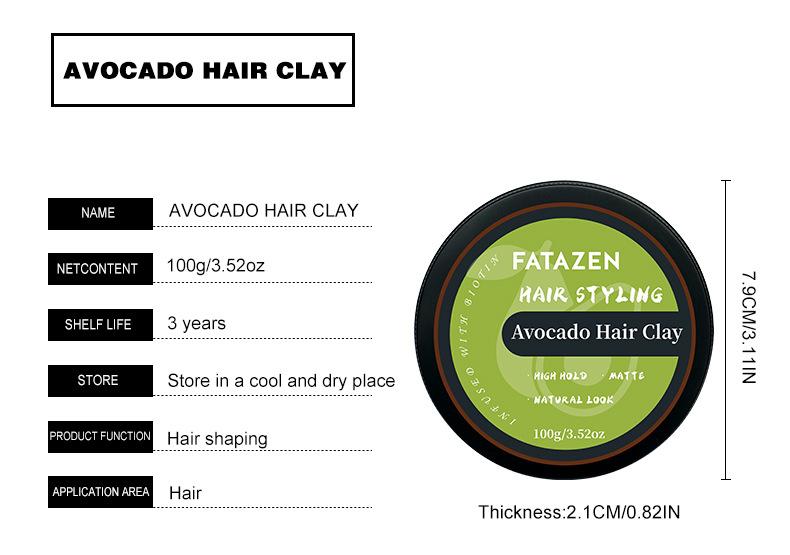 Argila Capilar de Abacate Transfronteiriça Modeladora e Modeladora Cuidado para Cabelo Curto Artefato Fixação Duradoura Cera Capilar Versão em Inglês Comércio Exterior
