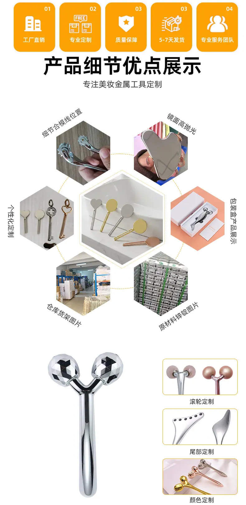 Fabricante personalizado Mini rolo de metal massageador facial, várias cores de bastão de beleza para emagrecimento facial, instrumento de massagem com rolo 3D